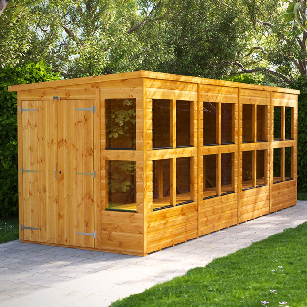 Designed for easy self-assembly, the Power 16 x 6ft Pent Potting Shed with Double Doors can be installed how you want by allowing you to place the door and windows in any position. Being modular, the door can be placed in any position on any side, which you can choose as you're assembling the building. Plus, this premium quality shed is made with high-grade timber sourced from the finest Scandinavian forests, which makes it durable and lasting. Each building is dip treated using our special formula wood preserver, with a wax additive allowing you to go a whole year without the need to re-treat your garden building. Every component is dip treated by submerging it into the treatment ensuring it is thoroughly coated before being removed and dried.