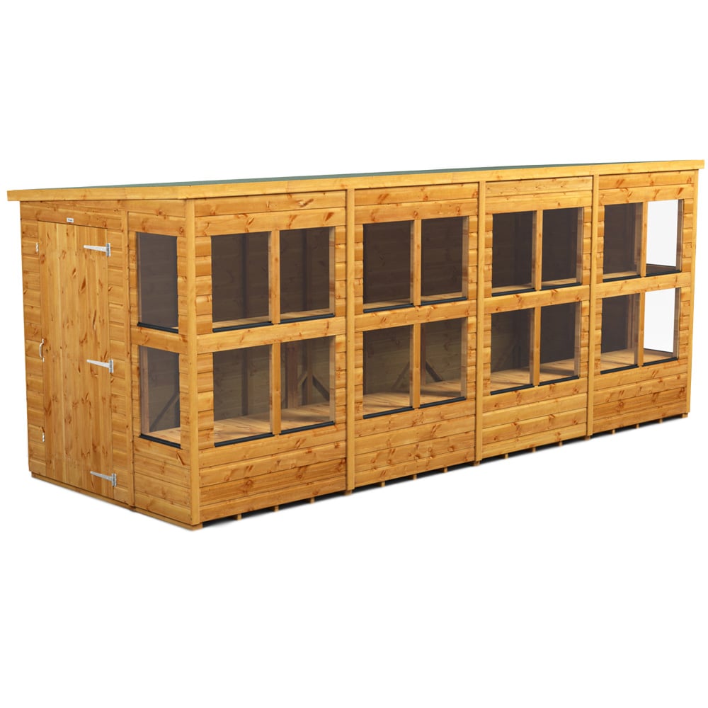 Designed for easy self-assembly, the Power 16 x 6ft Modular Pent Potting Shed can be installed how you want by allowing you to place the door and windows in any position. Being modular, the door can be placed in any position on any side, which you can choose as you're assembling the building. Plus, this premium quality shed is made with high-grade timber sourced from the finest Scandinavian forests, which makes it durable and lasting. Each building is dip treated using our special formula wood preserver, with a wax additive allowing you to go a whole year without the need to re-treat your garden building. Every component is dip treated by submerging it into the treatment ensuring it is thoroughly coated before being removed and dried.