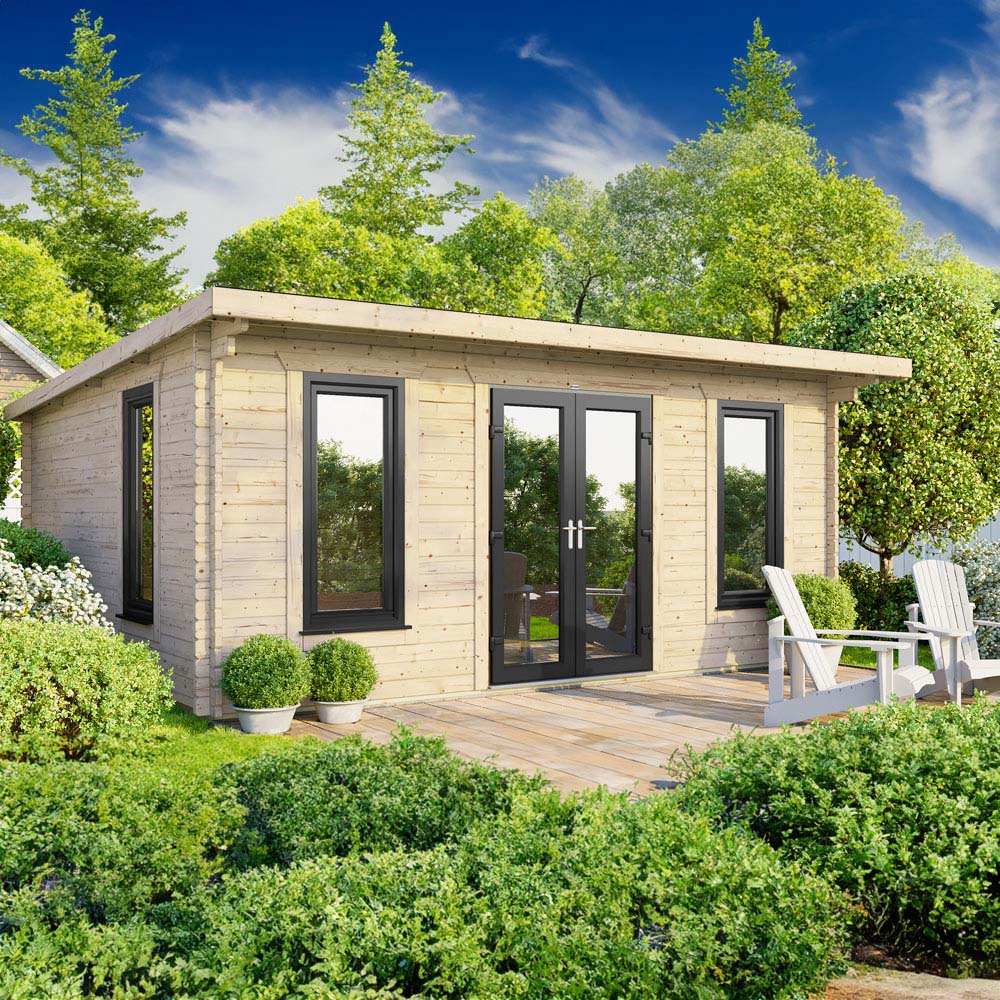 Make a practical and stylish addition to your outdoor space with the Power Sheds 18 x 14ft Centre Door Pent Log Cabin. It is built with 44mm thick high-grade timber walls, ensuring durability and strength. The cabin features uPVC double doors and 'Tilt and Turn' opening windows in anthracite grey, providing both security and insulation. The toughened double glazing and 5-point locking mechanism further enhance the safety of the cabin. The roof of the cabin has a 50-year life expectancy, thanks to the EPDM rubber roofing system and gutter edge drip plate that ensures long-lasting protection against the elements. Additionally, the cabin is designed to be under 2.5m in height, allowing it to bypass most planning permission restrictions. It features 'easy access' aluminium low threshold sills on the doors, making it convenient for entry and exit. The Burford-style skirting adds a touch of elegance to the cabin's design. Furthermore, the cabin is designed for easy self-assembly, making it easily accessible.