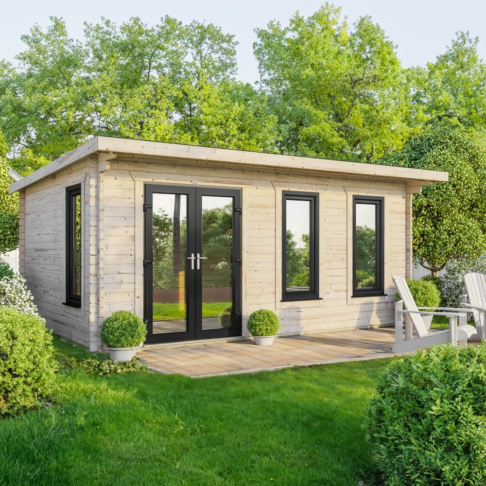 Make a practical and stylish addition to your outdoor space with the Power Sheds 20 x 14ft Left Door Pent Log Cabin. It is built with 44mm thick high-grade timber walls, ensuring durability and strength. The cabin features uPVC double doors and 'Tilt and Turn' opening windows in anthracite grey, providing both security and insulation. The toughened double glazing and 5-point locking mechanism further enhance the safety of the cabin. The roof of the cabin has a 50-year life expectancy, thanks to the EPDM rubber roofing system and gutter edge drip plate that ensures long-lasting protection against the elements. Additionally, the cabin is designed to be under 2.5m in height, allowing it to bypass most planning permission restrictions. It features 'easy access' aluminium low threshold sills on the doors, making it convenient for entry and exit. The Burford-style skirting adds a touch of elegance to the cabin's design. Furthermore, the cabin is designed for easy self-assembly, making it easily accessible.