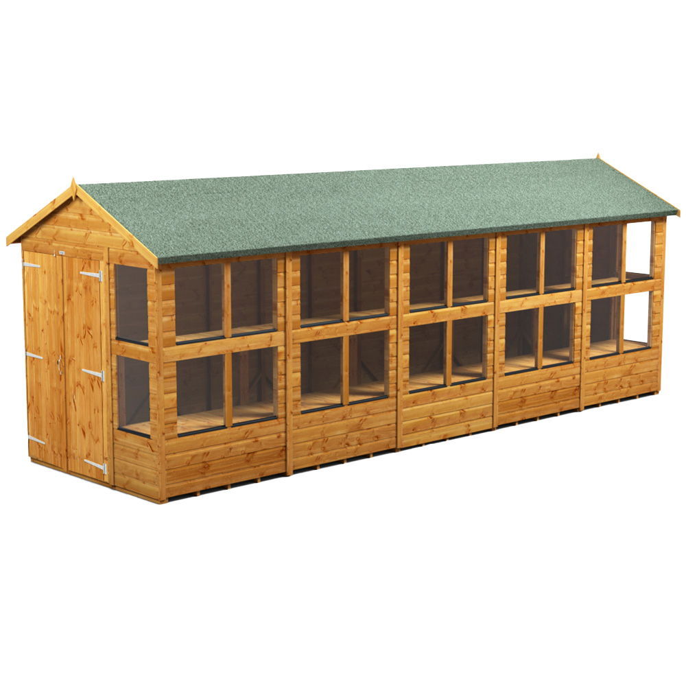 Designed for easy self-assembly, the Power 20 x 6ft Apex Potting Shed with Double Doors can be installed how you want by allowing you to place the door and windows in any position. Being modular, the door can be placed in any position on any side, which you can choose as you're assembling the building. Plus, this premium quality shed is made with high-grade timber sourced from the finest Scandinavian forests, which makes it durable and lasting. Each building is dip treated using our special formula wood preserver, with a wax additive allowing you to go a whole year without the need to re-treat your garden building. Every component is dip treated by submerging it into the treatment ensuring it is thoroughly coated before being removed and dried.