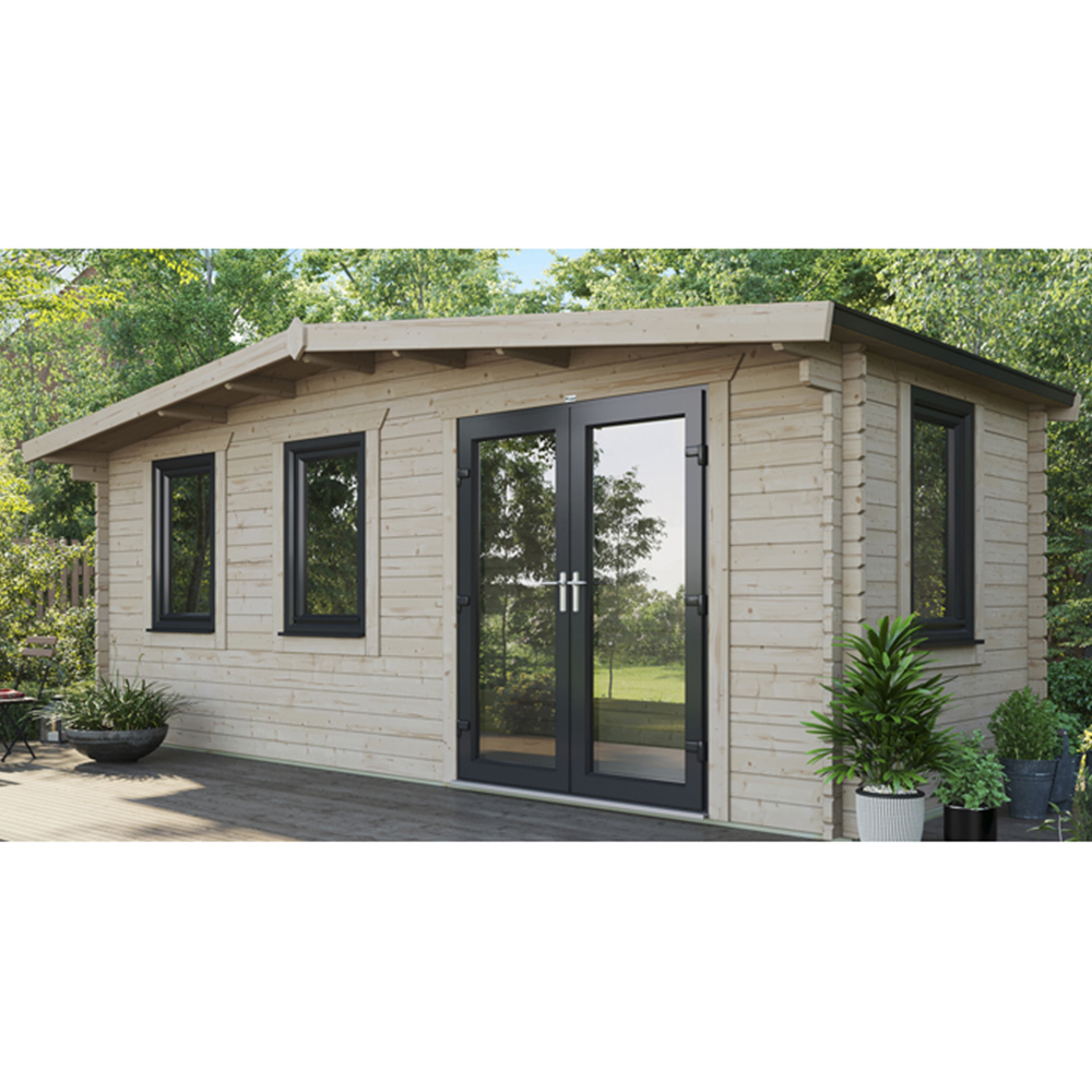 Make a practical and stylish addition to your outdoor space with the Power Sheds 8 x 20ft Right Door Chalet Log Cabin. It is built with 44mm thick high-grade timber walls, ensuring durability and strength. The cabin features uPVC double doors and 'Tilt and Turn' opening windows in anthracite grey, providing both security and insulation. The toughened double glazing and 5-point locking mechanism further enhance the safety of the cabin. The roof of the cabin has a 50-year life expectancy, thanks to the EPDM rubber roofing system and gutter edge drip plate that ensures long-lasting protection against the elements. Additionally, the cabin is designed to be under 2.5m in height, allowing it to bypass most planning permission restrictions. It features 'easy access' aluminium low threshold sills on the doors, making it convenient for entry and exit. The Burford-style skirting adds a touch of elegance to the cabin's design. Furthermore, the cabin is designed for easy self-assembly, making it easily accessible.