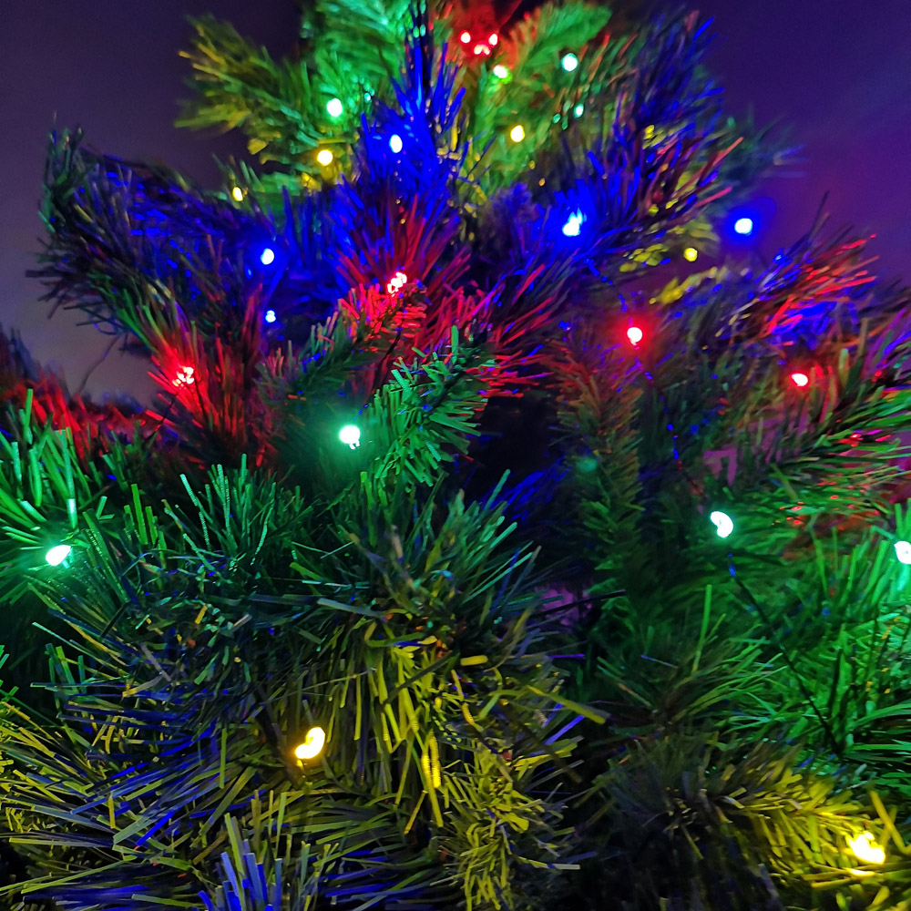 Light up the season with the Premier 400 Multicolour LED Waterfall Christmas Tree Light. Specially designed for decorating Christmas trees, this light features 400 multicolour LEDs spaced approximately ten centimetres apart on a green wire, ensuring a stunning, evenly display. The attached tree ring makes installation quick and easy; simply place it over the top of the tree for a hassle-free setup. This mains operated light comes with a generous five-metre lead from the UK three-pin transformer to the first bulb. It is equipped with a dual-purpose button on the transformer, which allows you to switch between eight lighting functions, including static, combination, in waves, sequential, slow glow, chasing/flash, slow fade and twinkle/flash. A long press activates the eight-hour on or 16-hour off timer, with the button illuminated to indicate the timer is active. It is suitable for indoor and outdoor use, though the IP20-rated transformer must always remain dry.