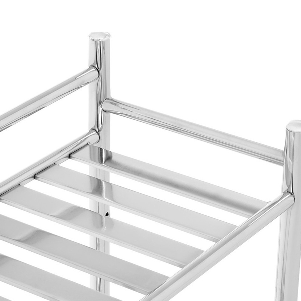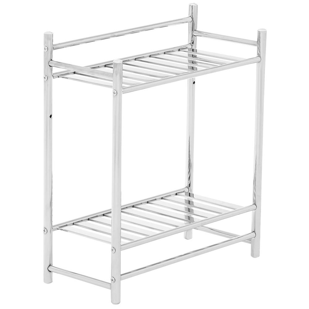 Helping to keep your bathroom organised and tidy, the 2 Tier Wall Mount Towel Shelves from will Premier Housewares make a welcome addition to your home. This towel rack is made from tough tubular metal and has a chrome finish for a reflective look. It features two shelves that are designed to hold folded towels, with a rail underneath the lower shelf for hanging a towel over. It can be securely mounted on the wall, saving floor space in the bathroom.