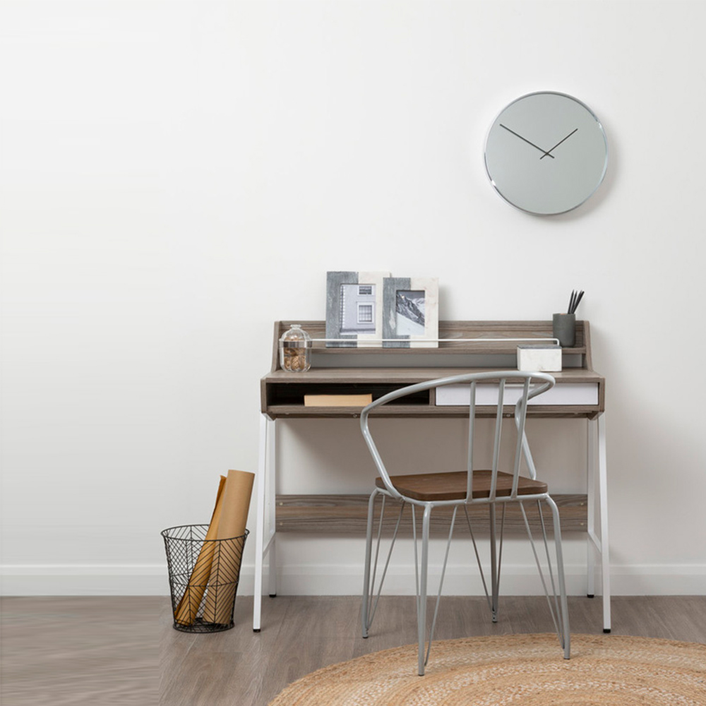 Add timeless beauty to your walls with this Premier Housewares Bailie Mirror Face Chrome Eound Wall Clock 40cm. This wall clock features a mirrored face made from smooth metal with a slim design, contributing to the clock's subtle aesthetic. Also, the metal has a chrome colour that allows the clock to be styled with warm metallic lighting and textiles. Plus, the minute and hour hands are coloured black and slim to complement the overall design.