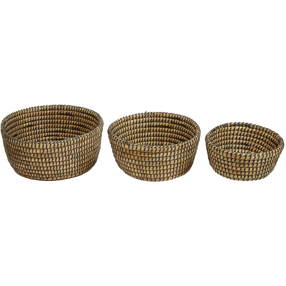 Premier Housewares Black Detail Round Straw Basket 3 Pack