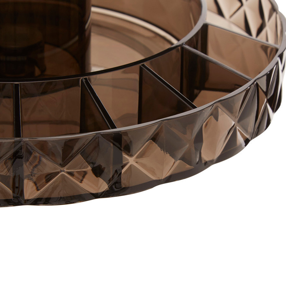 Showcasing optimal clarity and sturdiness, this cosmetic organiser from Premier Housewares is an ideal storage system for the harmony of the dressing table. It carries a stunning black finish with a textured pattern to complement any decor setting. With the revolving feature, this organiser allows locating and storing makeup items instantly.