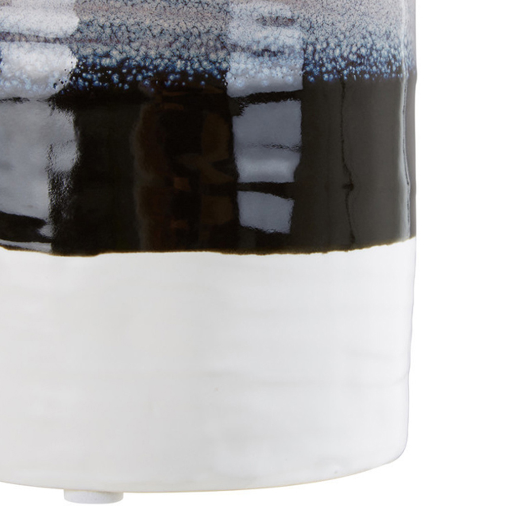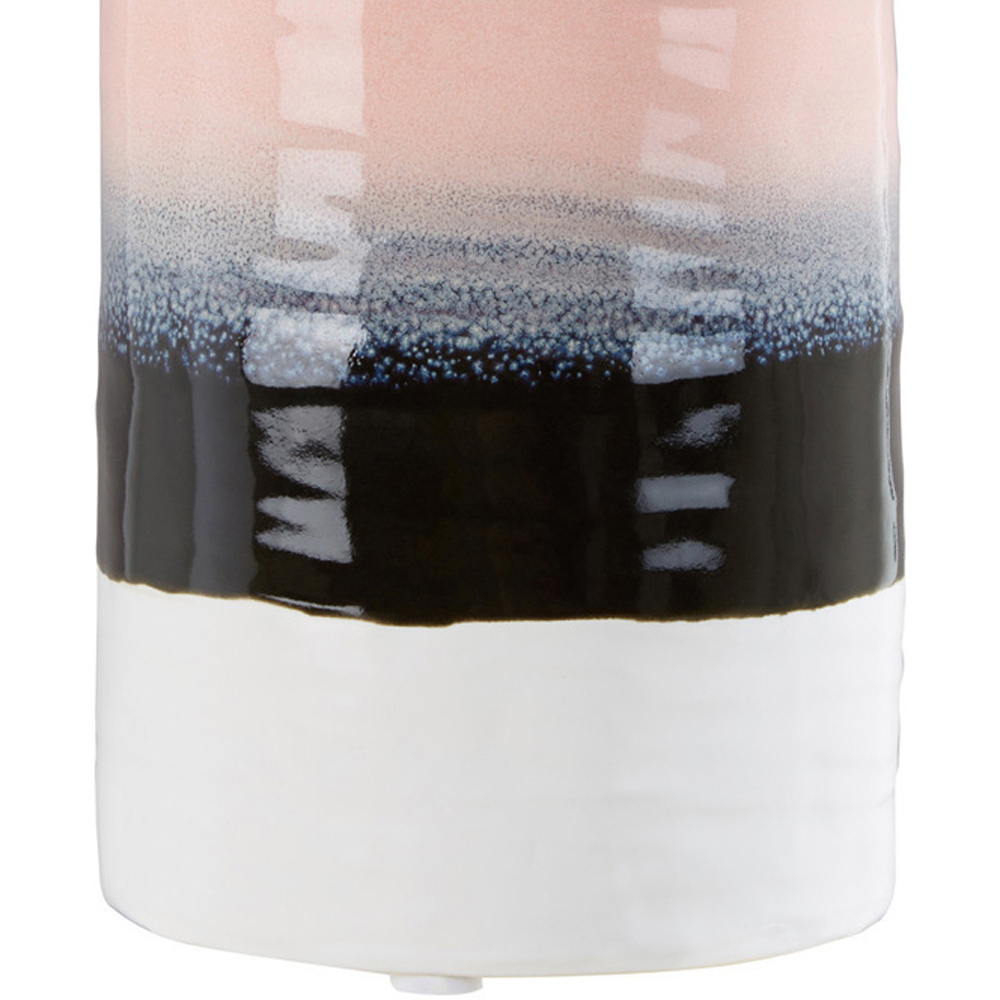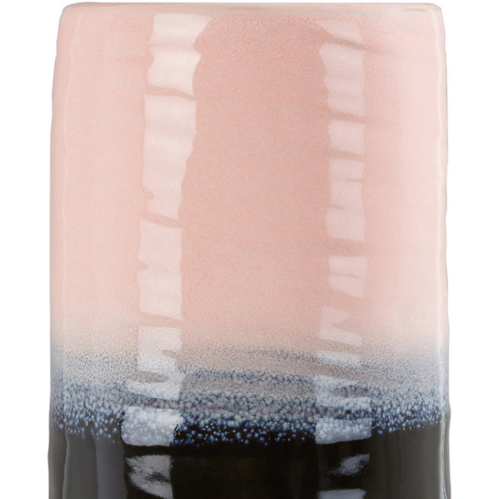 Add a splash of colour and form to your interiors with the Premier Housewares Caldera Tie Dye Effect Vase. Crafted from stoneware, this elegant vase showcases a captivating blend of pink, purple, black, and white colours, creating a mesmerizing tie-dye effect that adds a touch of artistic flair to any space. With its glazed stoneware finish, the vase exudes a polished look and enhances its textured surface, adding depth and visual interest. Whether used to display a verdant plant or as a standalone accent piece, the vase effortlessly elevates your decor. The ribbed surface of the vase adds a tactile element, inviting a touch and further enhancing its unique aesthetic.