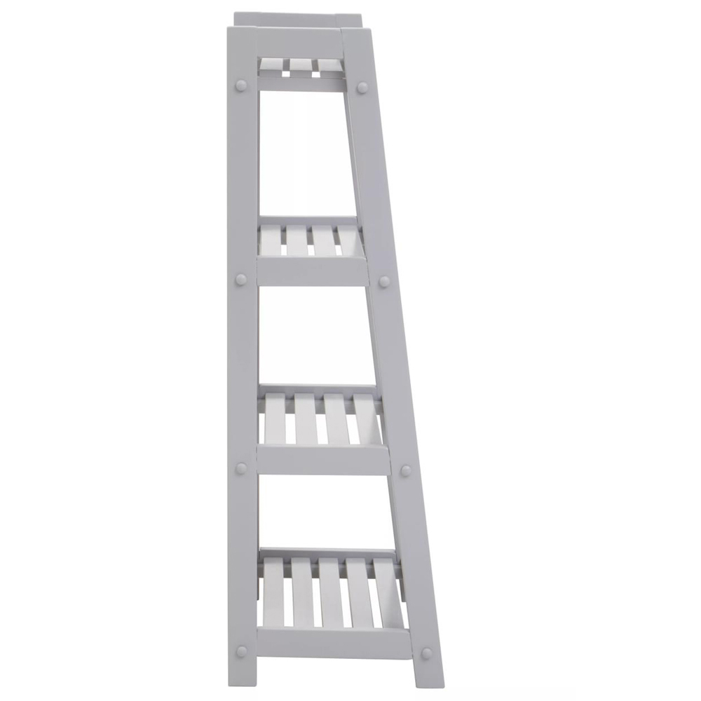 The Premier Housewares 4 Tier Chester Grey Wooden Shelf Unit offers a versatile storage and display solution. With its four tiered shelves of varying depths - it is crafted from durable natural wood. This unit showcases a stylish grey finish and a contemporary freestanding ladder design.