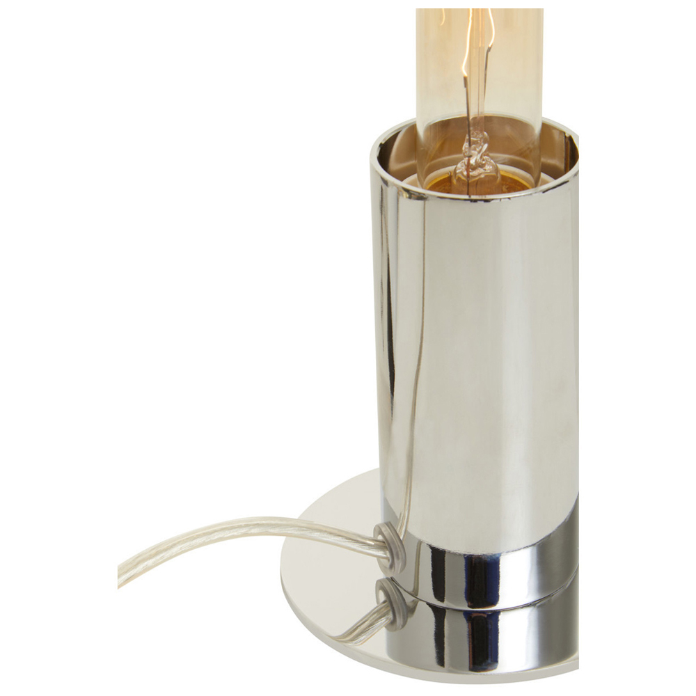As simple as it is stylish, this Table Lamp from Premier Housewares features a cylindrical base in a reflective chrome finish. The elegant base supports an exposed retro globe that is ideal for vintage industrial interiors. Ideal to give finishing touches to indoor spaces, the lamp will complement most decors and help to coordinate your room. Please click here to find our range of lightbulbs.