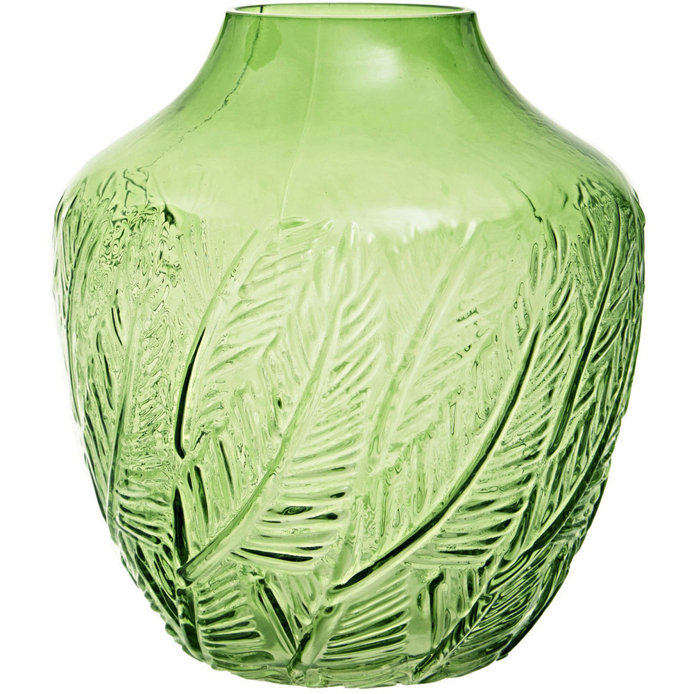 Unleash the beauty of nature with the Premier Housewares Corie Small Botanical Green Vase. The vase, crafted from translucent green glass, showcases an intricate botanical print that adds a touch of enchantment to any room. The round vase features a narrowed opening, making it perfect for showcasing floral arrangements or serving as a standalone piece of decor. The textured surface of the vase adds a tactile element, enhancing its visual appeal. With its robust glass construction and captivating design, this small vase effortlessly blends botanical charm with artistic craftsmanship.