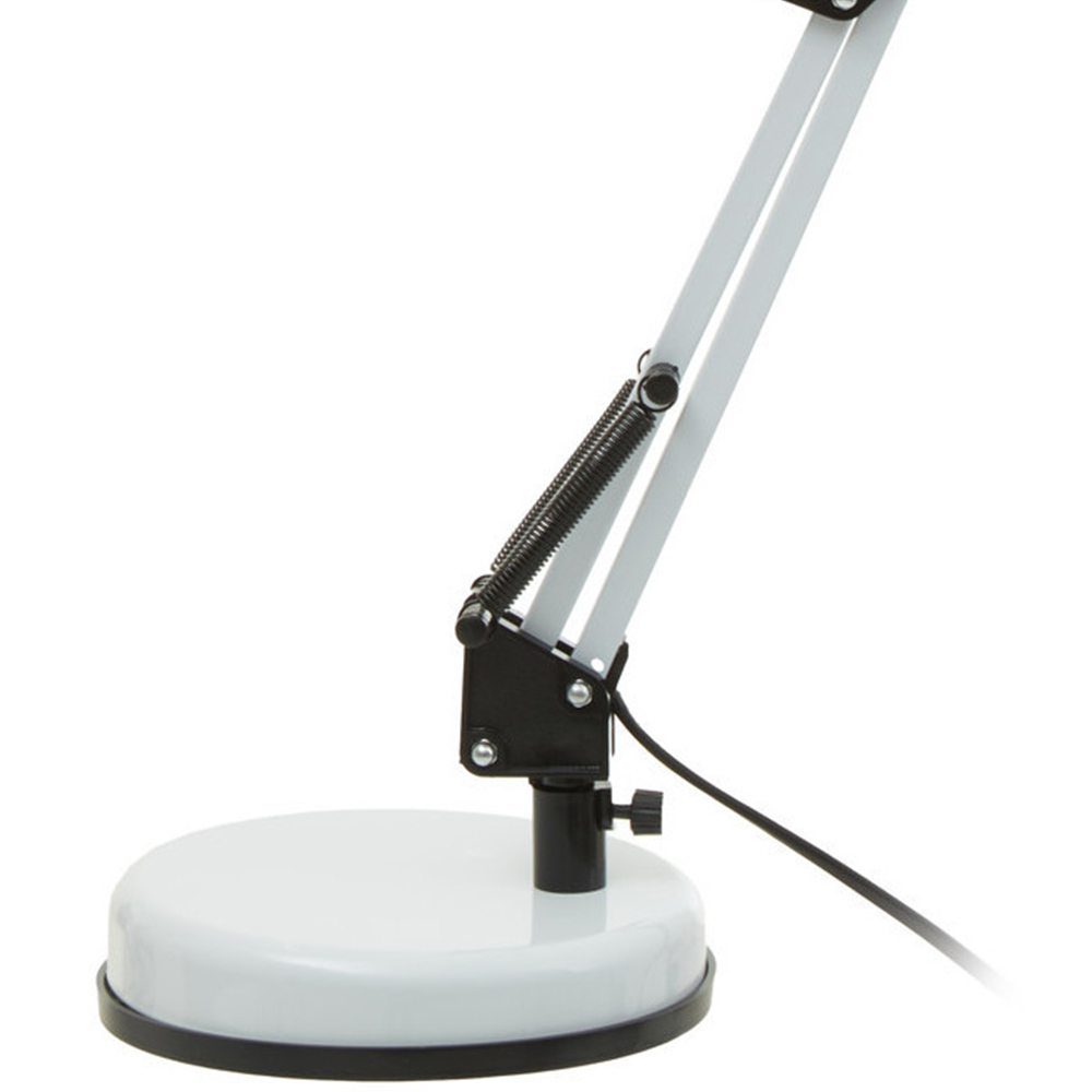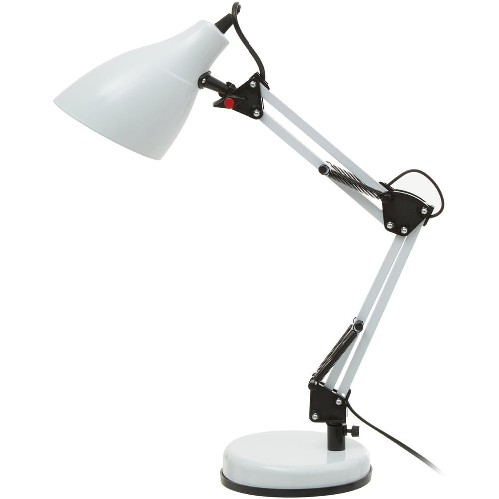 Discover a perfect blend of style and functionality with the Premier Housewares Finley White Desk Lamp. This desk lamp features a round movable shade connected to an adjustable arm with knuckle joints, allowing you to direct the light exactly where you need it. Skilfully crafted from robust iron and finished in an elegant white tone, this lamp is durable and adds a touch of sophistication to your workspace. The sturdy round base ensures stability, making it ideal for any desk or table. With its portable and adjustable design, you can easily position the lamp to create the perfect lighting atmosphere for reading, studying, or working on your projects. This desk lamp is a contemporary lighting solution that combines practicality with modern design. It requires 1 x E27 Bulb (Not Included). Please click here to find our range of lightbulbs.