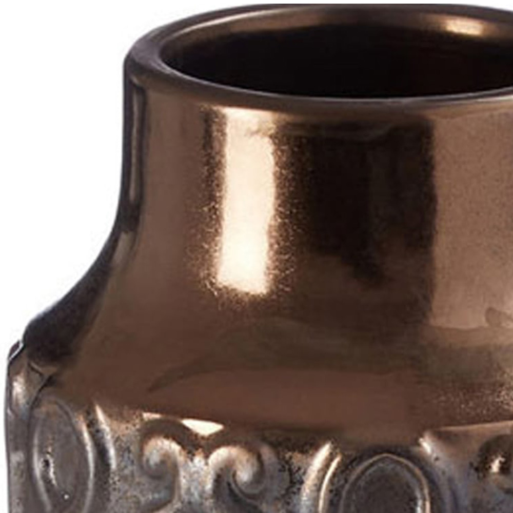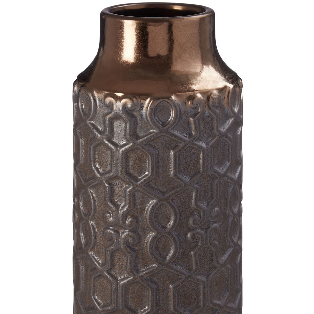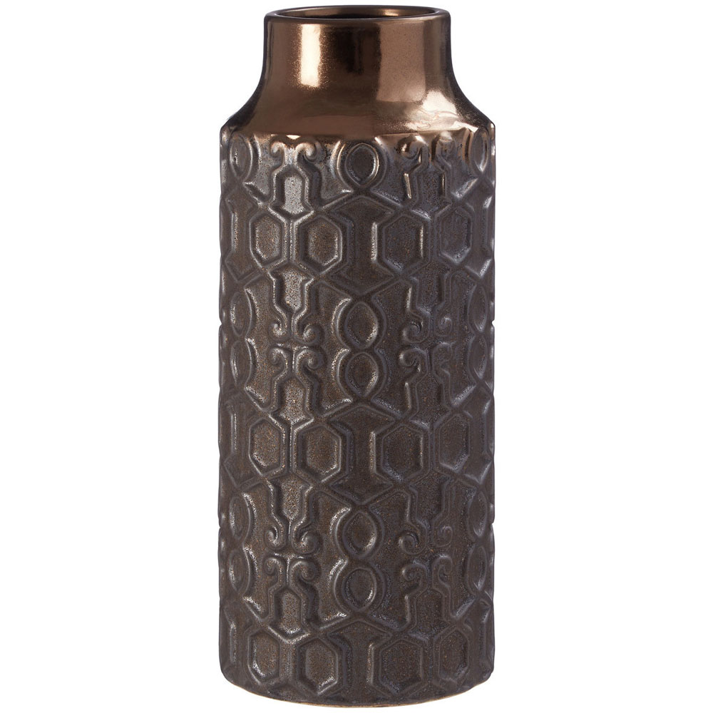 Make a stunning addition to your living space with this Premier Housewares Gold Zircon Small Ceramic Vase. The vase is skilfully handcrafted from robust ceramic and boasts a subtle glazed finish around the surface. Featuring a textured surface with a gold and metallic grey palette, this small vase lends a geometric accent to the living area.