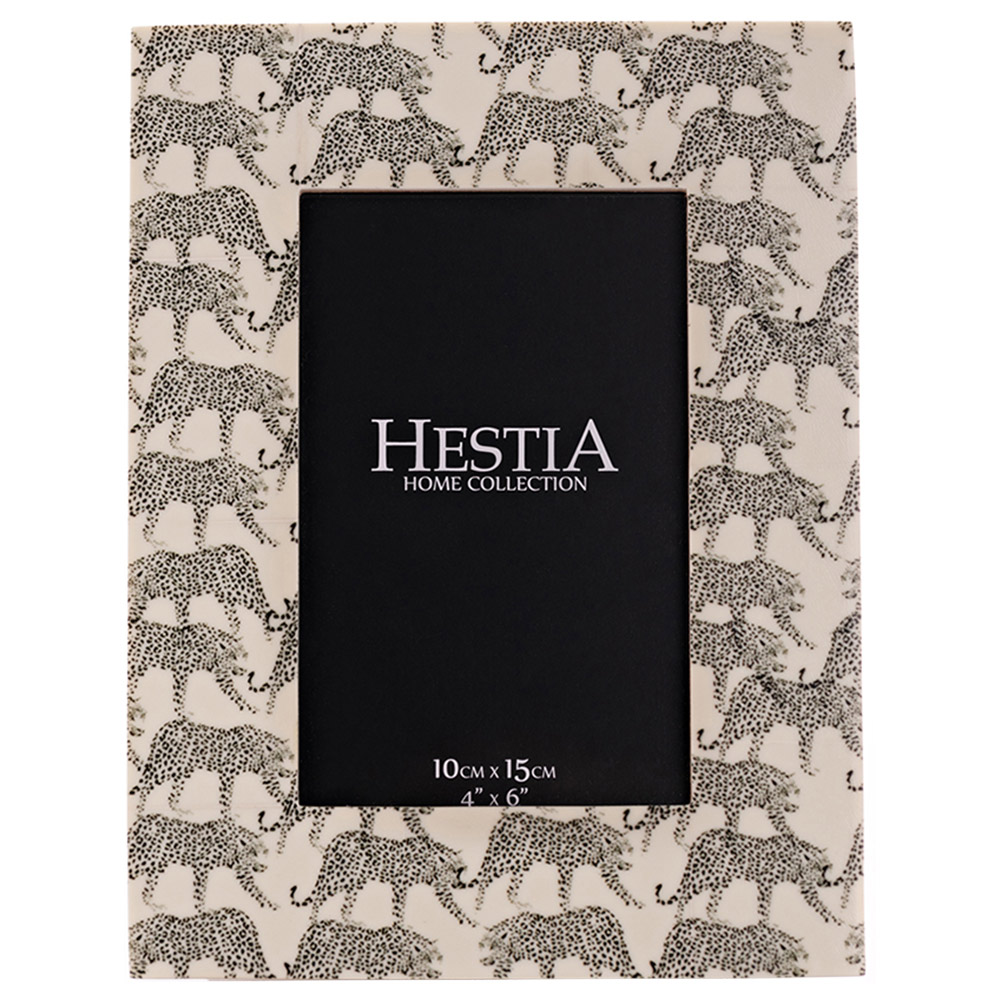 Exhibit your picture-perfect moments with Premier Housewares Hestia Resin Jaguar Photo Frame. With a striking jaguar print design, this resin photo frame is the perfect gift for wildlife lovers. Rectangular 4 x 6 inches aperture.
