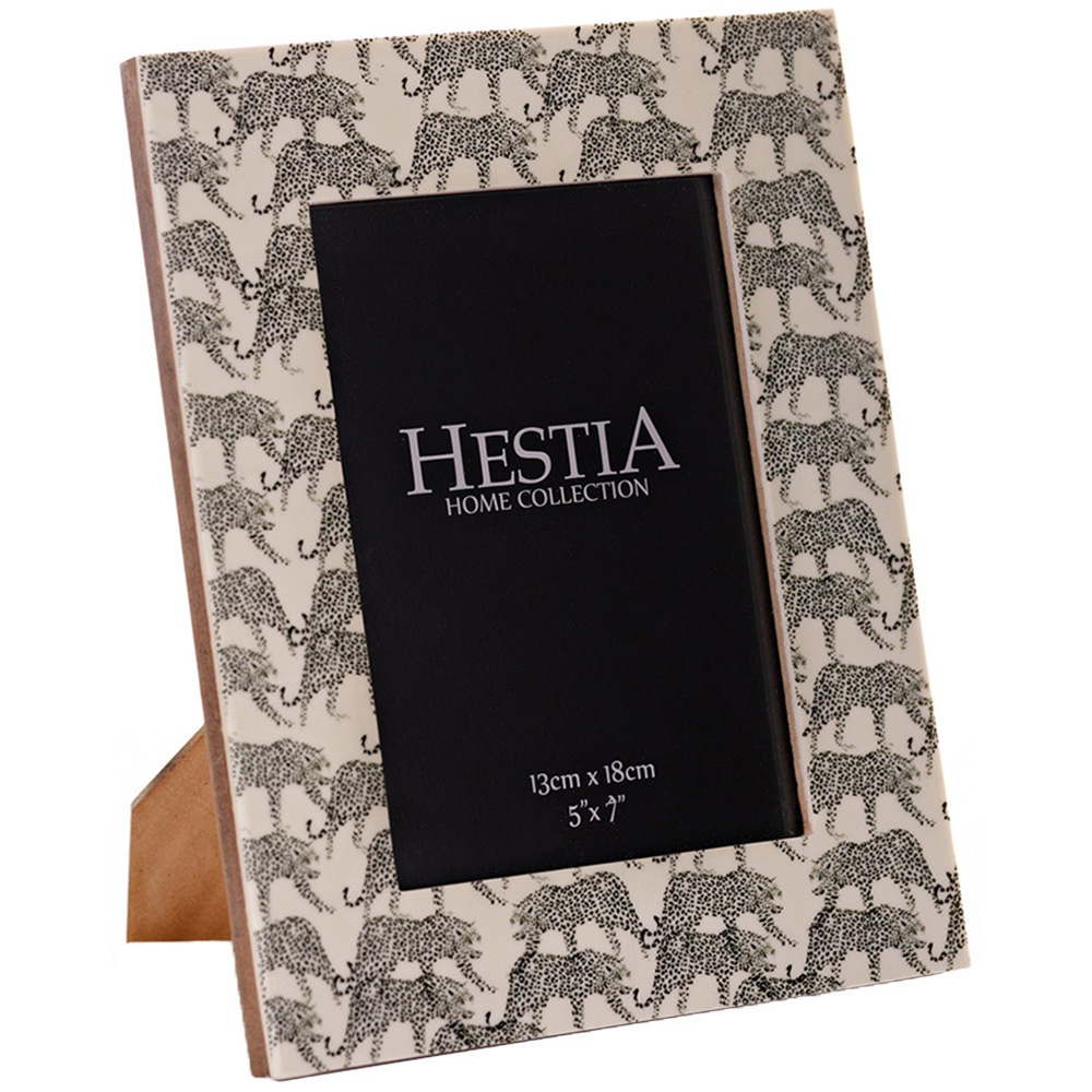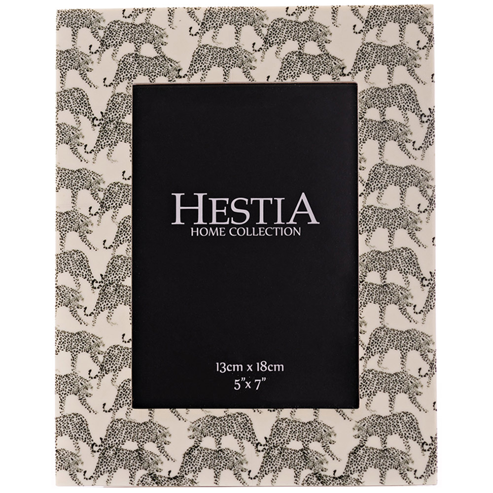 Exhibit your picture-perfect moments with Premier Housewares Hestia Resin Jaguar Photo Frame. With a striking jaguar print design, this resin photo frame is the perfect gift for wildlife lovers. Rectangular 5 x 7 inches aperture.