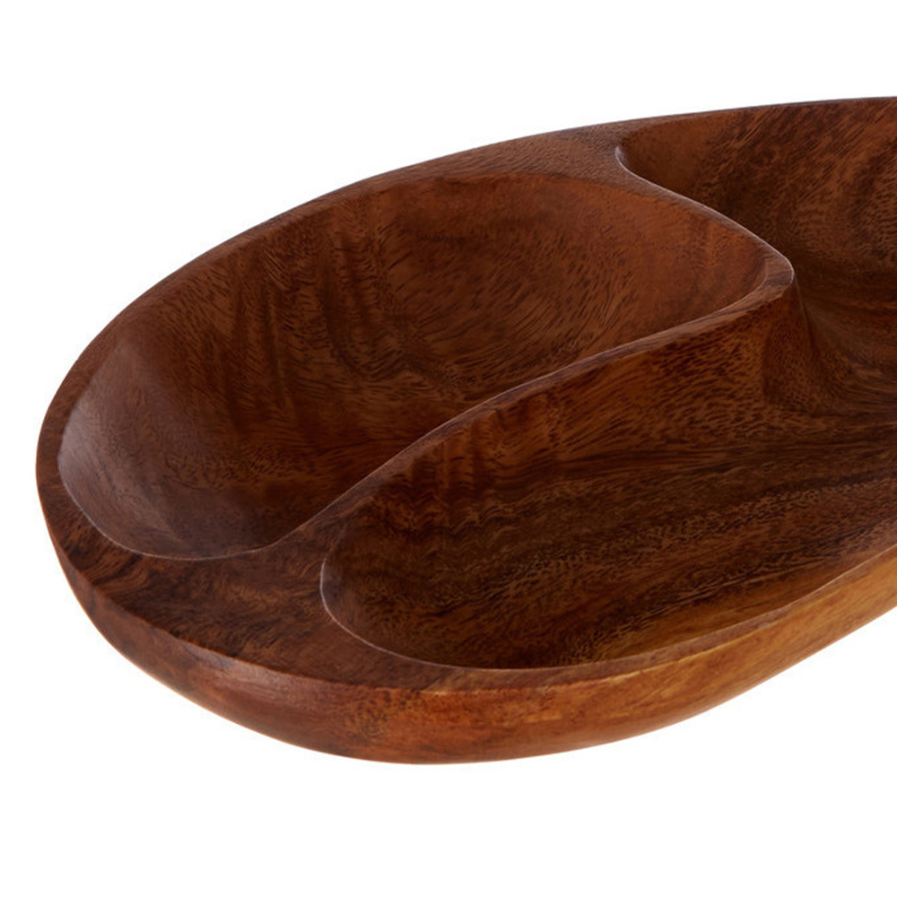Create a focal point on the tabletop with Premier Housewares Kora 2 Section Serving Dish. With an organic appearance and rustic character - this hand-carved serving dish is made from eco-friendly acacia wood.
