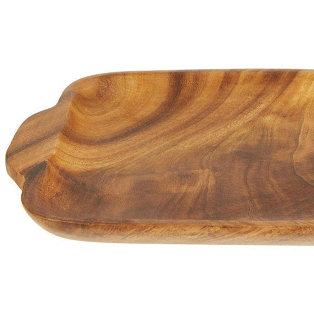 Serve delicious treats in style with Premier Housewares Kora Serving Tray With Handles. Made from eco-friendly acacia wood - it comes with elegantly curved sides. With unique natural variation and texture, this serving tray adds ample rustic warmth to the tabletop.