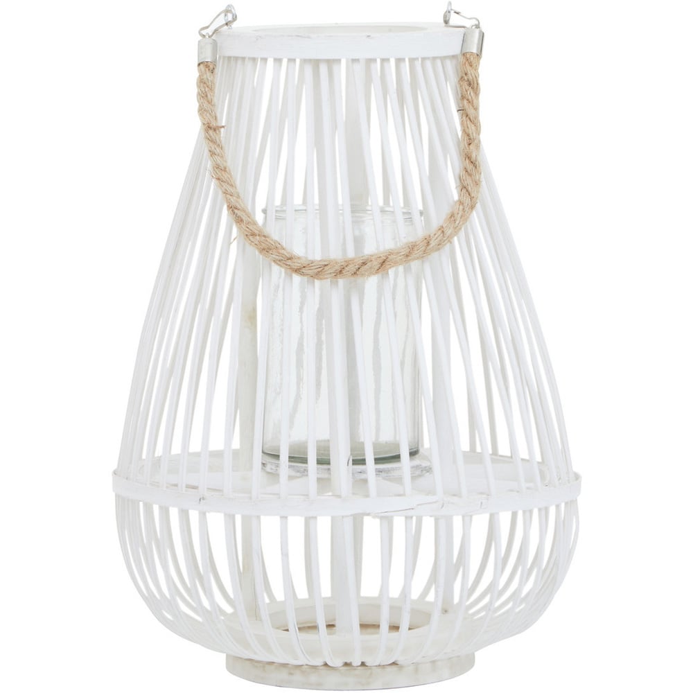 Premier Housewares Lentigo White Bamboo Lantern Small