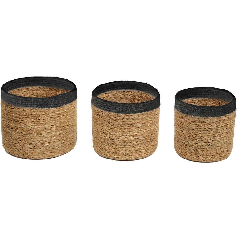 Premier Housewares Natural and Black Round Seagrass Basket 3 Pack