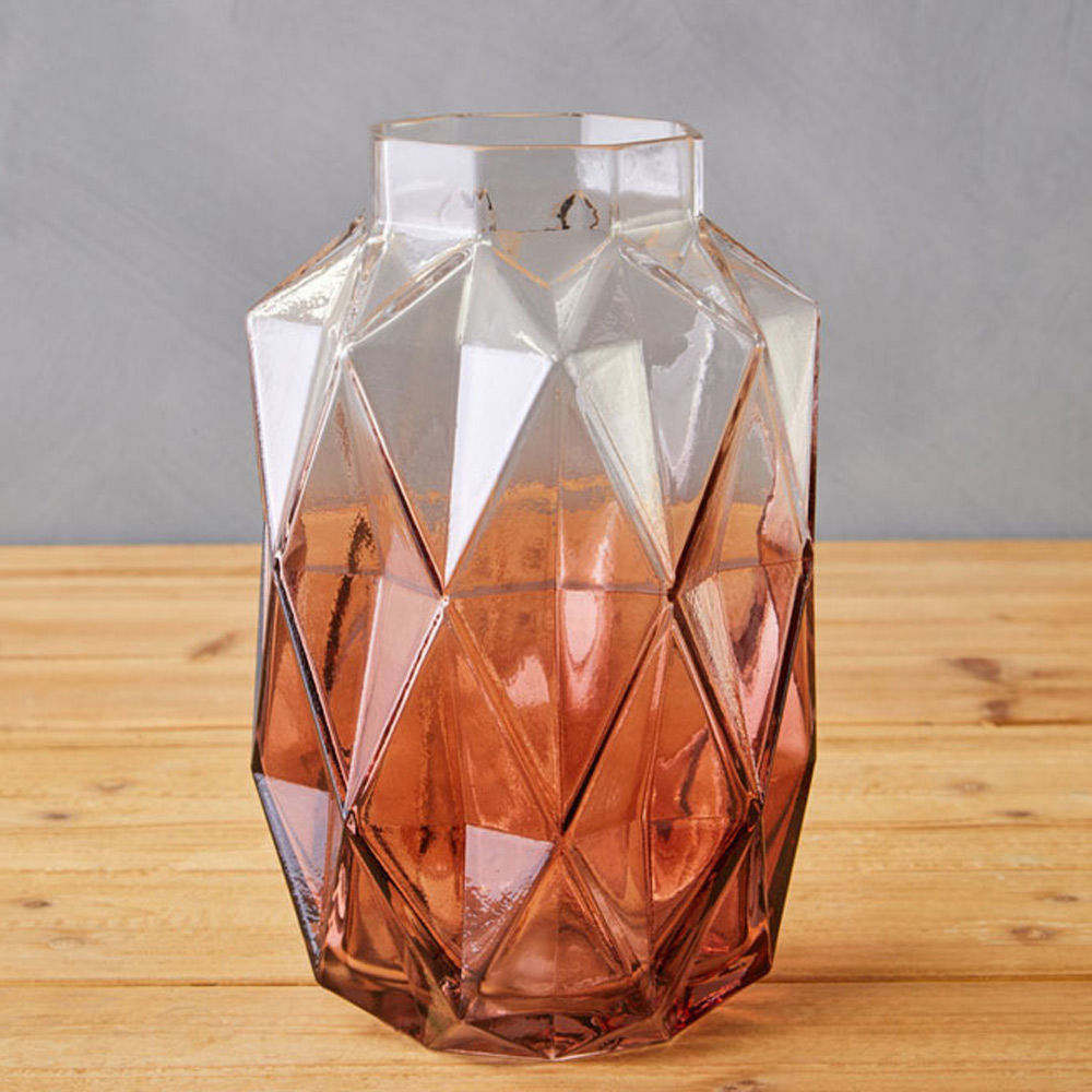 Expertly handcrafted with angular and multifaceted edges and finished in pink ombre hues, this small Brice Glass Vase from Premier Housewares will make a chic accent on the surface. The gradient effect combines well with the diamond cut detail, making this vase an ideal decoration piece. An ideal housing for fresh or faux flowers, it will add a charming touch to your home decor.