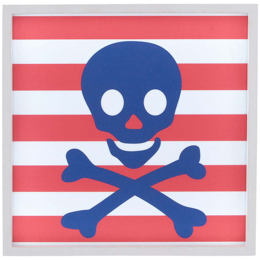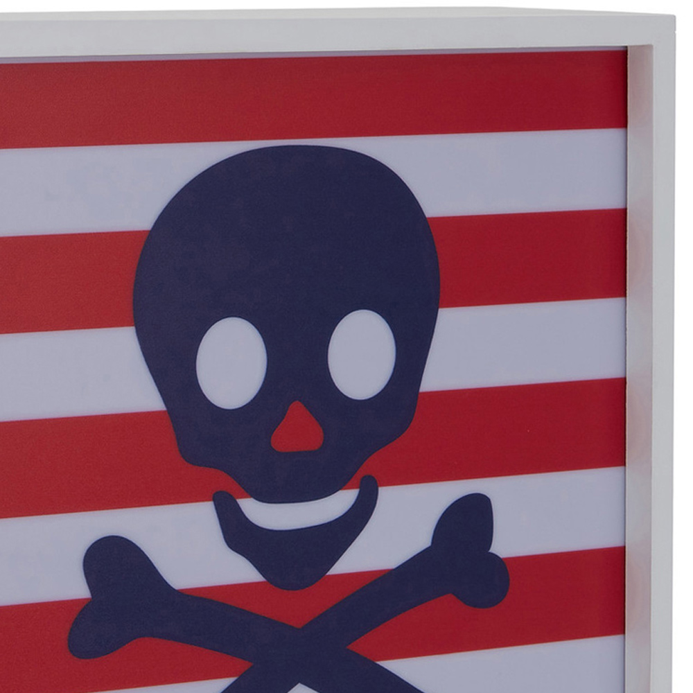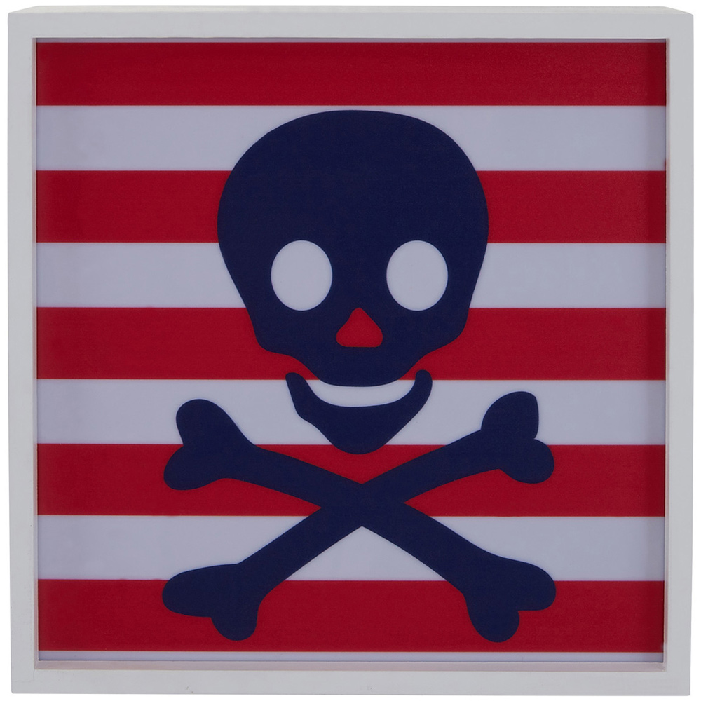 Lift your home aesthetics effortlessly with this Premier Housewares Pirate LED Light Box. Features a red and white stripe design, which brightens when the LED lighting is activated behind. The skull and crossbones design also become more prominent, making it an ideal accent piece for aspiring pirates everywhere. Display it on a shelf or hang it on the wall with a strong metal hook at the rear. It requires 1 x LED Bulb (Included). Please click here to find our range of lightbulbs.