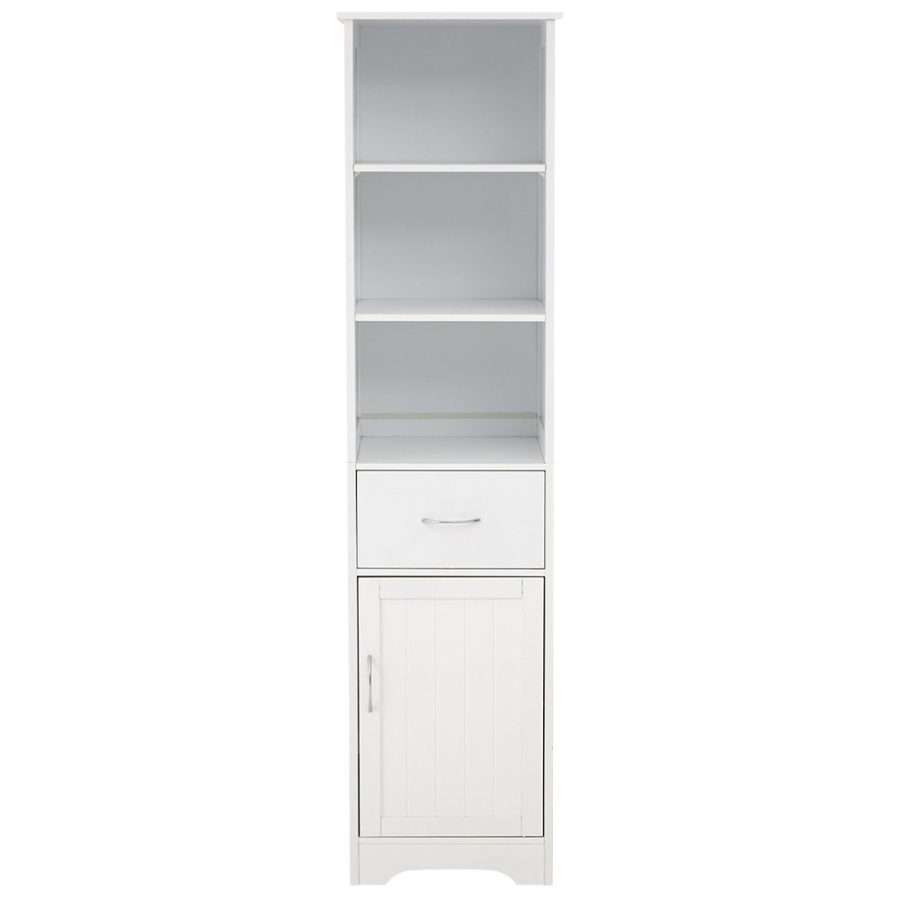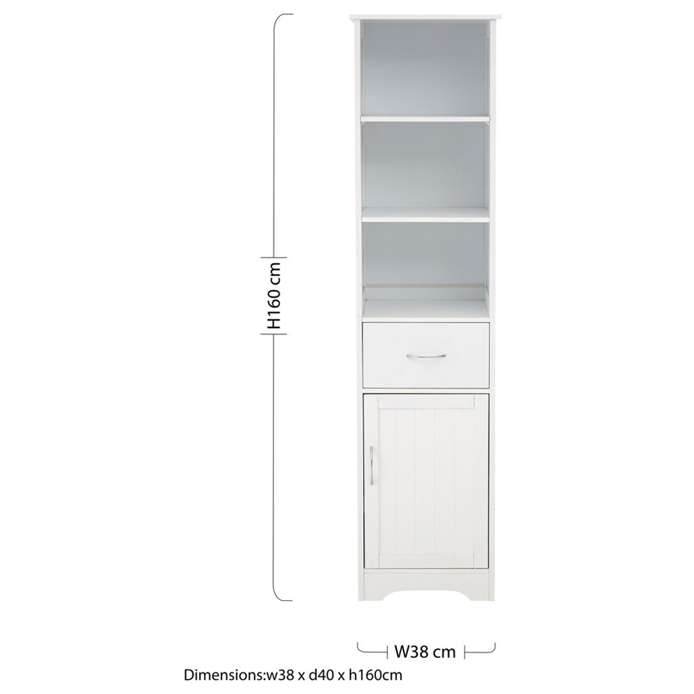 Organise and store bathroom essentials and trinkets in the stylish Portland Tall Cabinet from Premier Housewares. With three tiers of open shelves, one drawer and a cabinet with one inner shelf it will keep your bathroom clutter out of sight. Finished in simple white, this practical wooden tall cabinet blends perfectly with your modern or traditional decor.