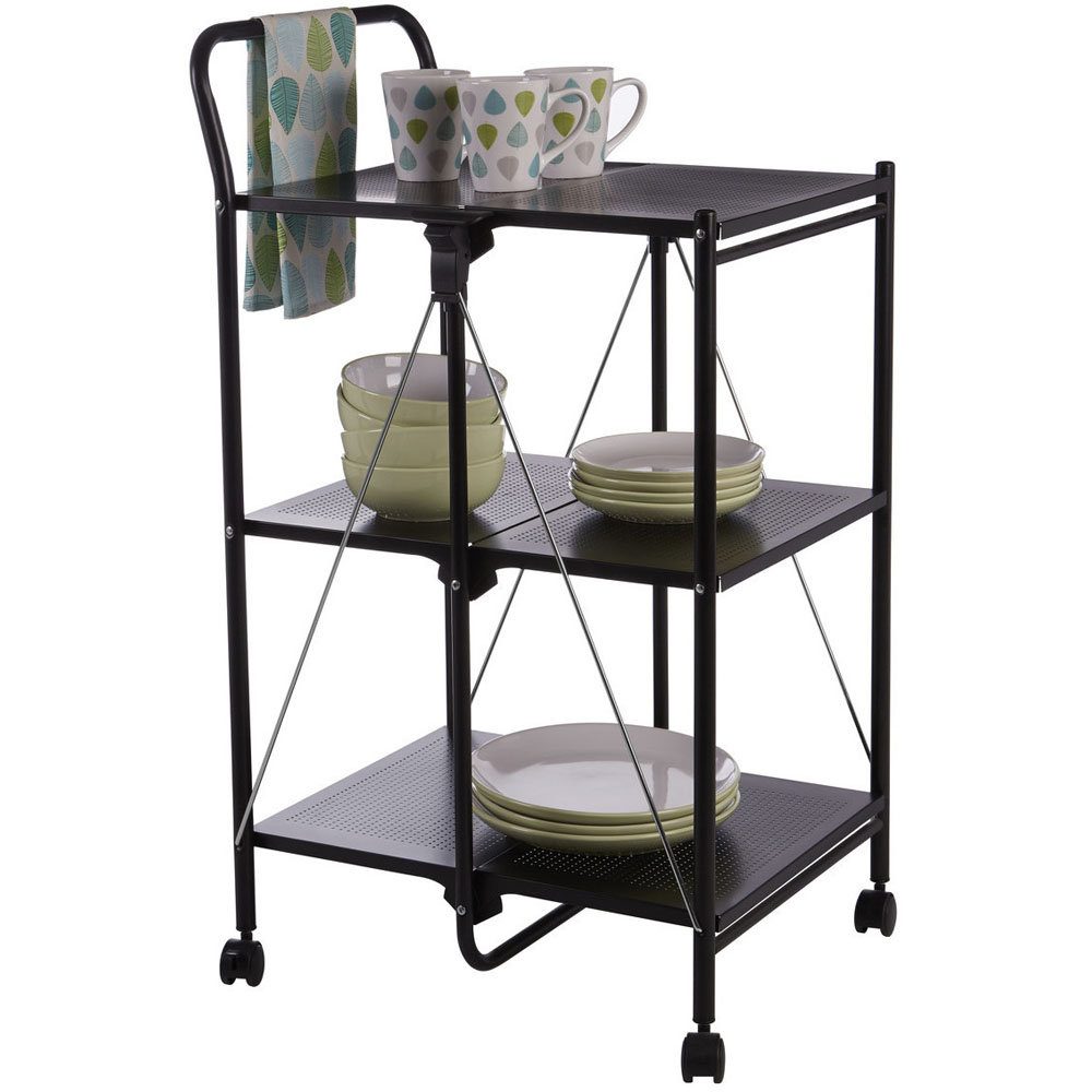 This Rectangular Folding Kitchen Trolley from Premier Housewares is perfect to add some extra storage space to the kitchen. Designed in classic black, it features a powder-coated metal frame for durability and three shelves to store things. Plus, it is foldable for easy storage!