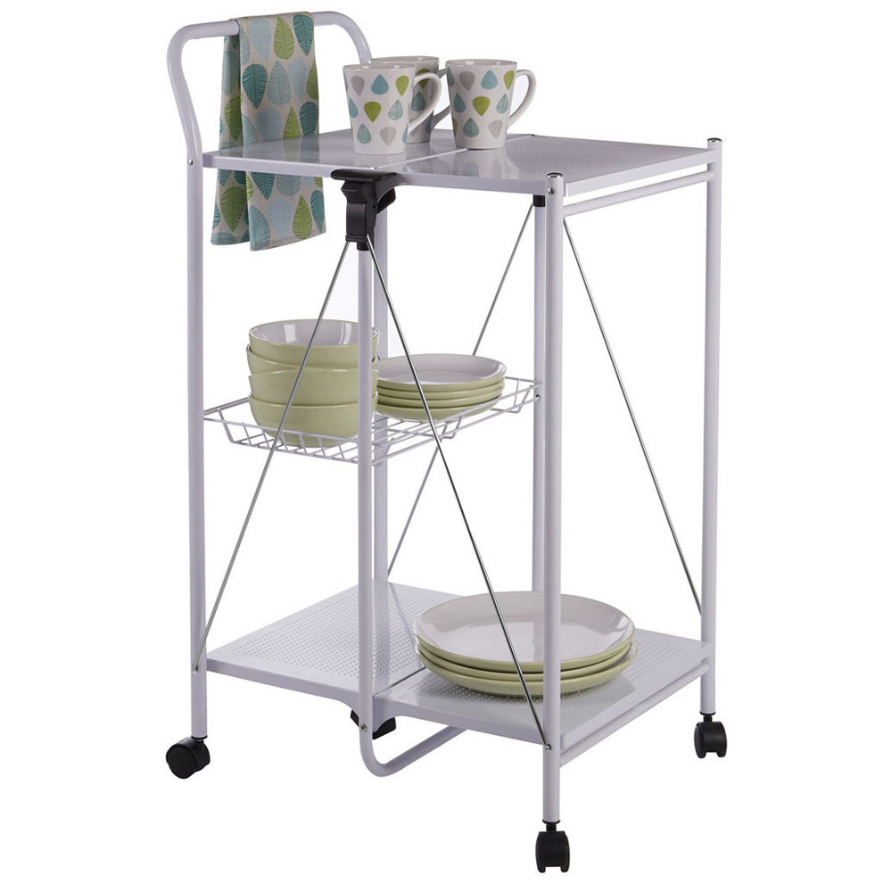 Premier Housewares Rectangular Folding White Kitchen Trolley