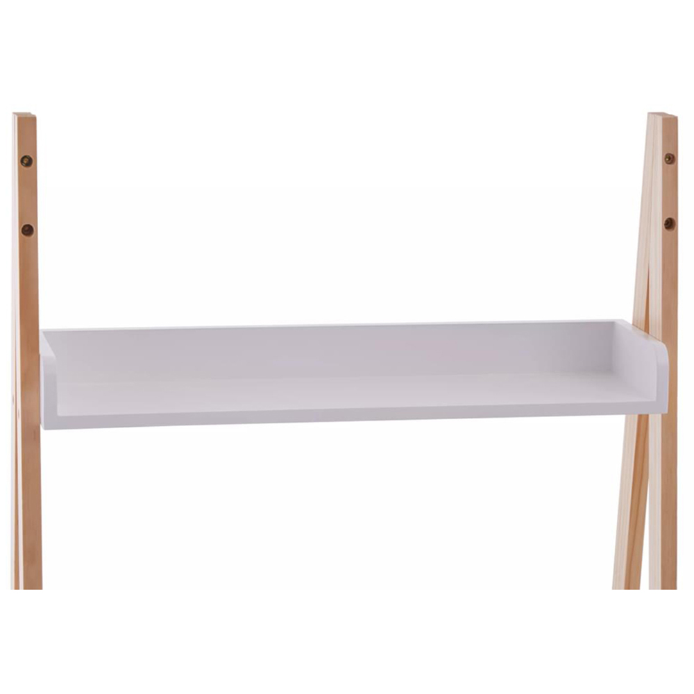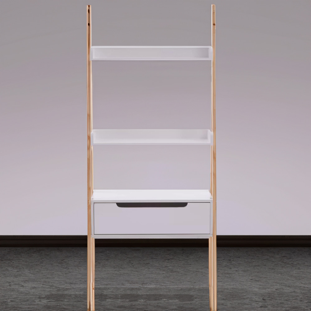 The Premier Housewares Rostok Shelf Unit is a storage display ladder shelf that boasts an elegant and compact design. It is perfect for any living room, bedroom, or office space. This shelf unit comes with two tiers and one drawer, providing ample storage space for your belongings. Additionally, it features shelves that are perfect for displaying frames, ornaments, and other decorative items. The natural wood finish adds a touch of sophistication, while the compact design ensures it can fit seamlessly into any space. The white finish adds a clean and modern touch to the overall aesthetic.