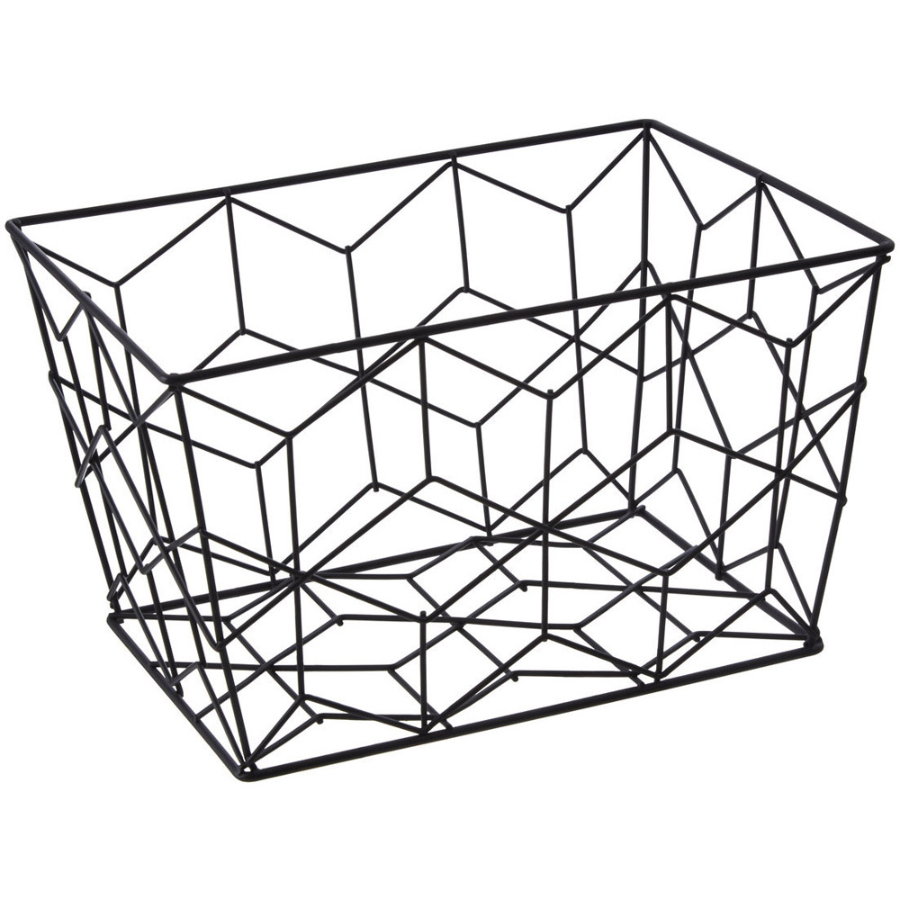 Stay organised with Premier Housewares Vertex Contour Black Storage Basket. The Vertex Contour matte black finish storage basket is crafted from metal wire in a minimal, open design. Simple and practical, it is designed in a tapered shape with a wider rim to offer ample storage space. It features a geometric accent and an open design.