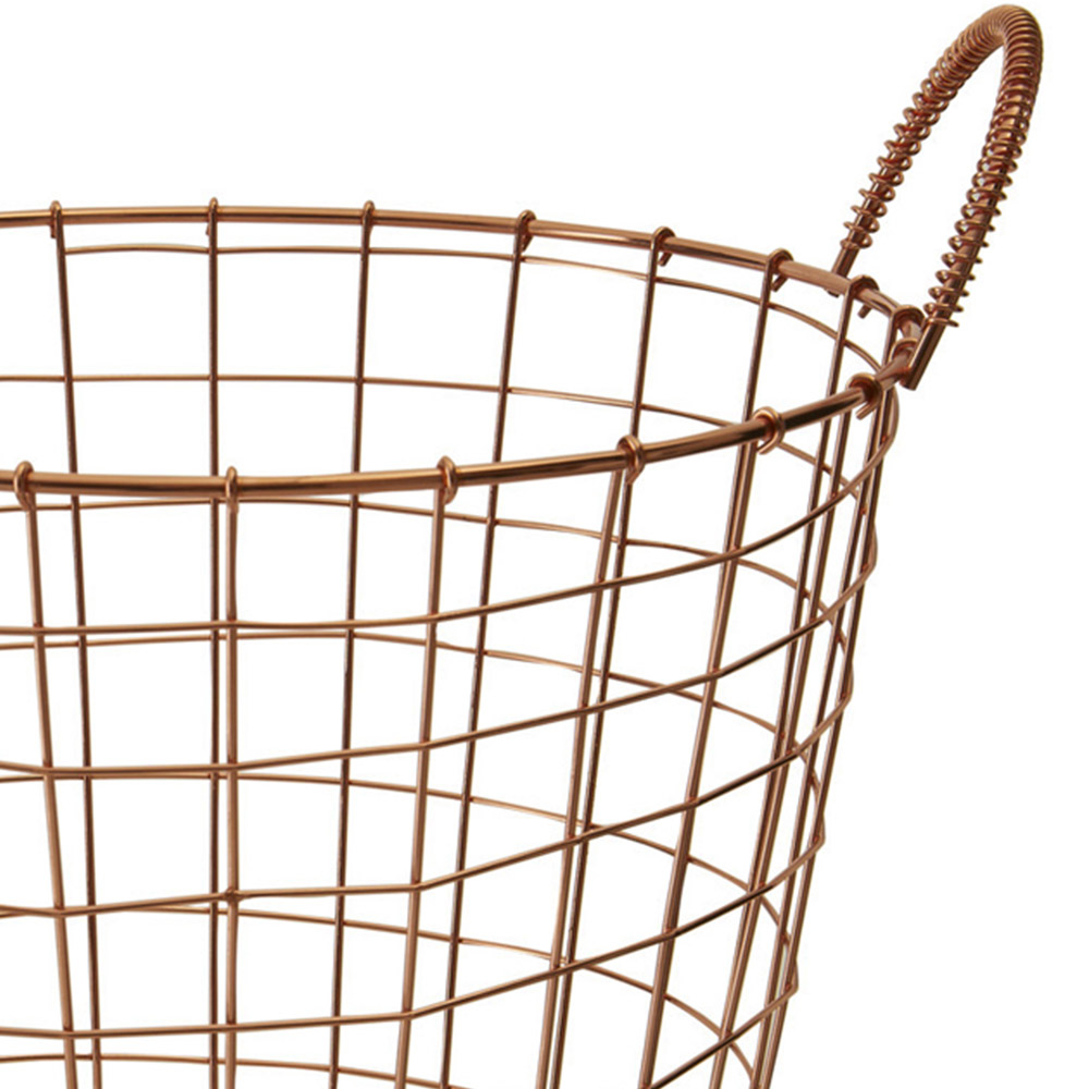 Keep your home organised and clutter free with this Premier Housewares Vertex Copper Finish Round Wire Basket. This contemporary basket is crafted from a sleek copper finish that lends it a warm metallic look. Featuring a wide rim, it sports a tapered design and has an arcing handle at each side for easy lifting. It's made from strong iron and has a wireframe design, perfect for coordinating with geometric-style accessories.
