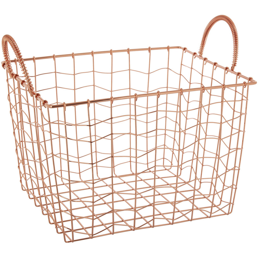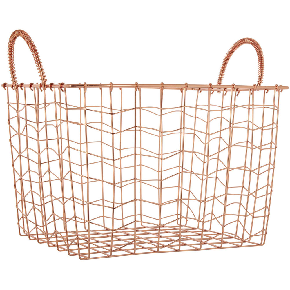 Keep your home neat and clutter free with this Premier Housewares Vertex Wavy Grid Rectangular Wire Basket. Sleek iron wires intersect each other to form a wavy grid pattern of this open storage basket. Its tapered construction is complemented by round side handles, which are neatly integrated on both sides. Stylish and functional, this storage basket boasts a luxe metallic charm and will provide sufficient storage when needed.