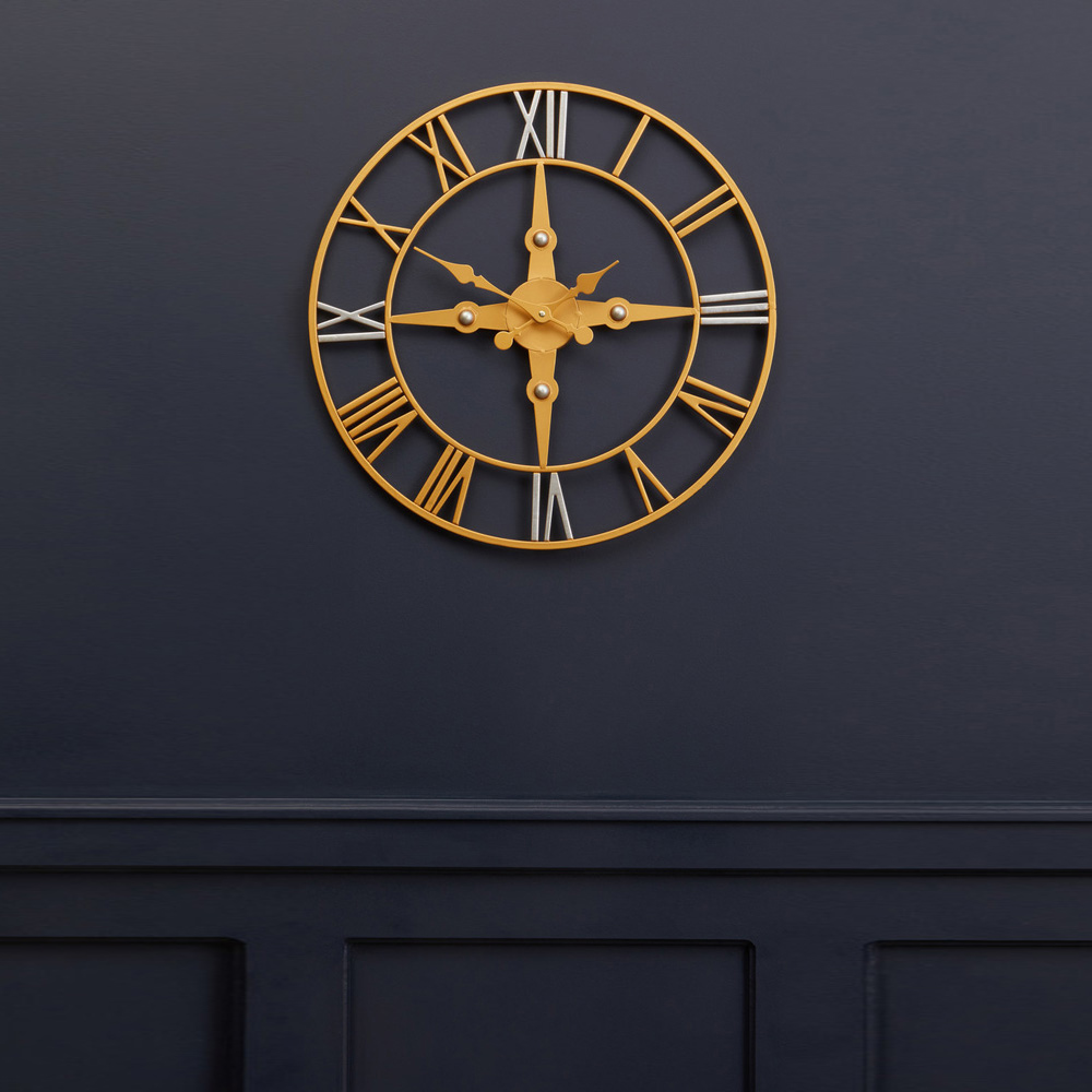 Premier Housewares Vitus Gold and Silver Round Wall Clock 59cm