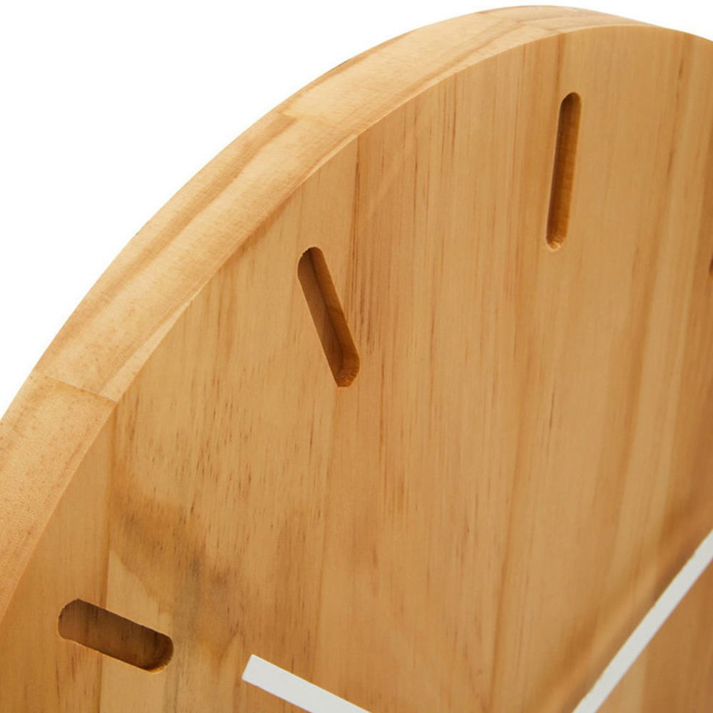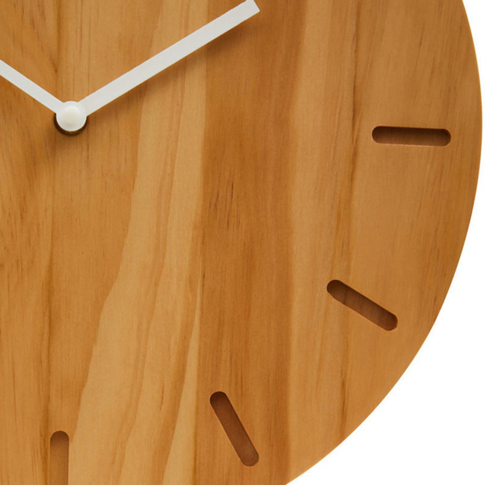 A true embodiment of a timeless character is here with Premier Housewares Vitus Natural Wood Effect Round Wall Clock 35cm. Expertly made from eco-friendly wood, this round wall clock adds depth and sophistication to any living space. Its unlabelled dial, veneering effect, and engraved minute lines blend style and functionality. Enjoy the aesthetics of natural beauty while maintaining accurate time.