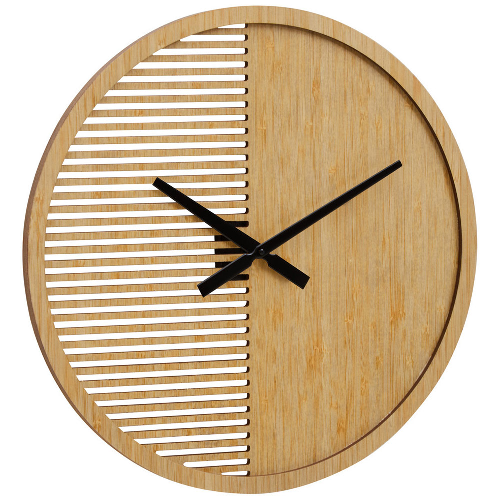 Welcome the perfect fusion of contemporary design and natural beauty with Premier Housewares Vitus Wooden Large Round Wall Clock 60cm. The asymmetrical sides of this wall clock in natural wood effect give it a unique and attractive appearance. Plus, the sleek black metal hands contrast with wood, enhancing modern sophistication.