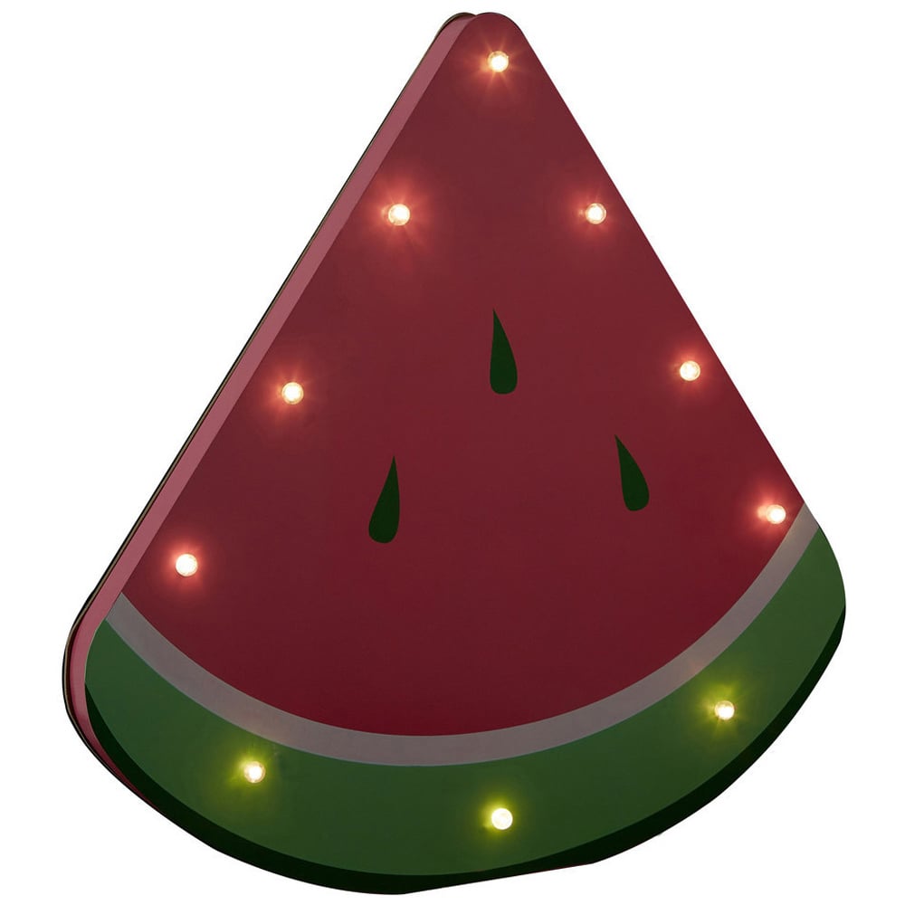 Brighten up your child's room or playroom with the Premier Housewares Watermelon LED Light. Featuring a vibrant and playful watermelon design, this light is sure to bring a splash of colour and joy to any space. The colourful polystyrene facing, backed by tough MDF, creates a visually appealing and cheerful display. Positioned around the edges of the light are small bulbs that, when lit, create an ambient glow, accentuating the delightful pink and green colours of the watermelon design. Whether placed on a desk, shelf, or any flat surface, the small rectangular bollard at the rear of its base adds a fun and whimsical touch to the room, creating a welcoming and playful environment. It requires 10 x LED Bulbs (Included). Please click here to find our range of lightbulbs.