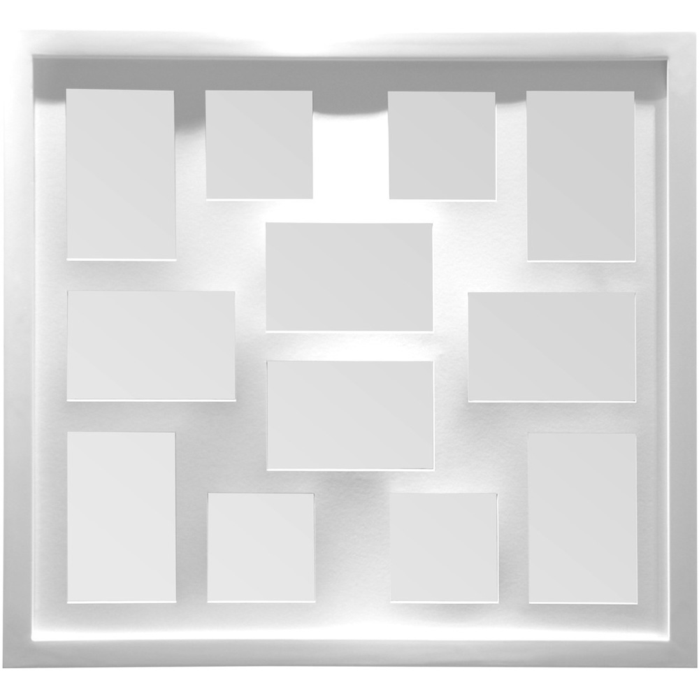 Add a personal touch to your home with the Premier Housewares White 12 Photo Multi Photo Frame. This chic frame allows you to showcase your favourite treasured moments with style. The neat white frame, made from high-quality Polyresin, complements any decor and ensures durability. It comes with 12 photo frames, including four portraits, four landscape and four square orientations, providing multiple options for displaying your chosen pictures. The glass panel protects your photos, ensuring they bring a smile for many years to come. Keep your shelves, tables, and mantles clutter-free by easily hanging the 12-photo multi-frame in landscape or portrait orientation on your wall.
