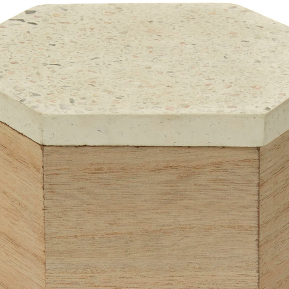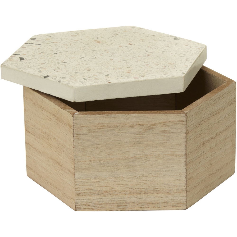 This Mimo Trinket Box from Premier Housewares will add a gentle and neutral accent to any room with its natural base and texture. The hexagonal base is topped with a white terrazo pattern lid which contrasts its understated hues. Ideal to store trinkets, this box will bring sophistication to a room with its clean lines and minimalism.