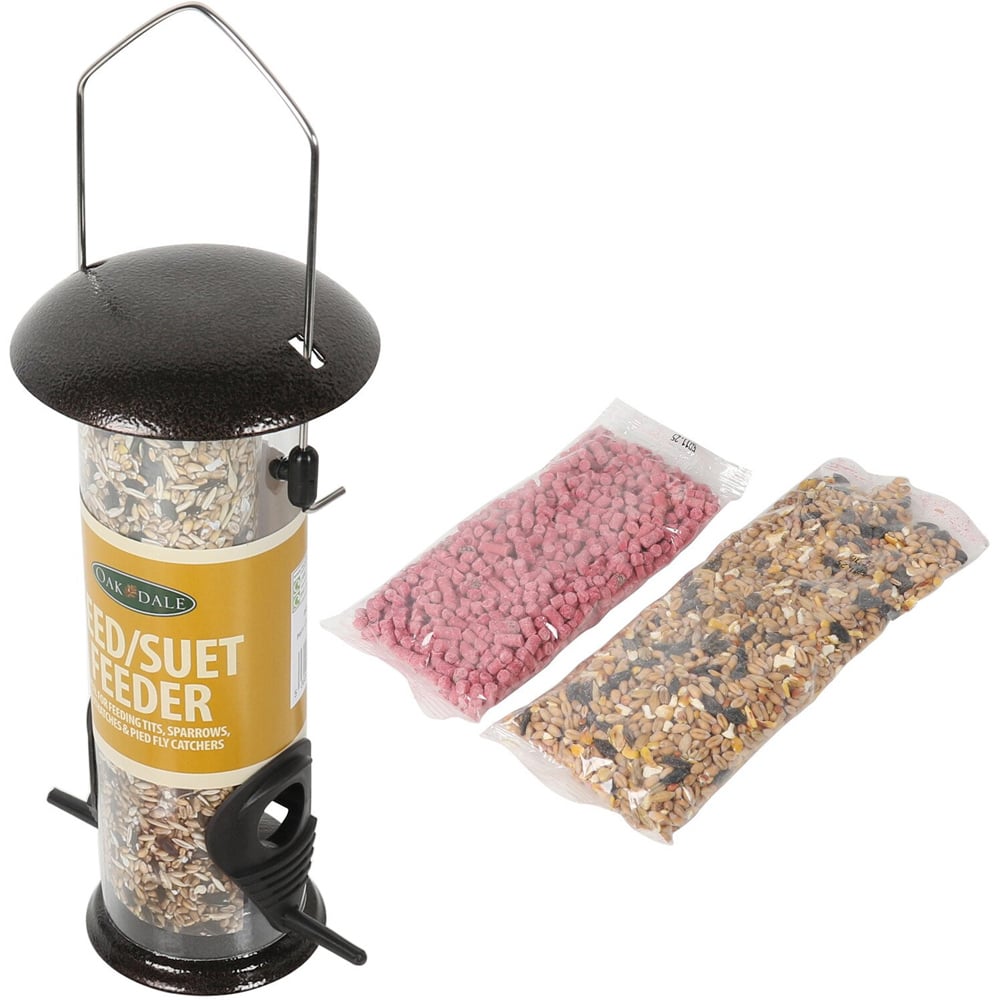 If you're looking for an ideal way to feed your feathered friends, this Premium Feeding Kit from Oakdale is the perfect choice. This top-of-the-line kit is ideal for dispensing seed mixes and suet pellets to wild birds. With its easy-to-use design, you'll have no trouble filling and cleaning it. Plus, its hardy hammer tone finish is sure to add a touch of elegance to any garden. A fantastic gift for bird lovers, this feeder is guaranteed to keep birds coming back to your garden for more.