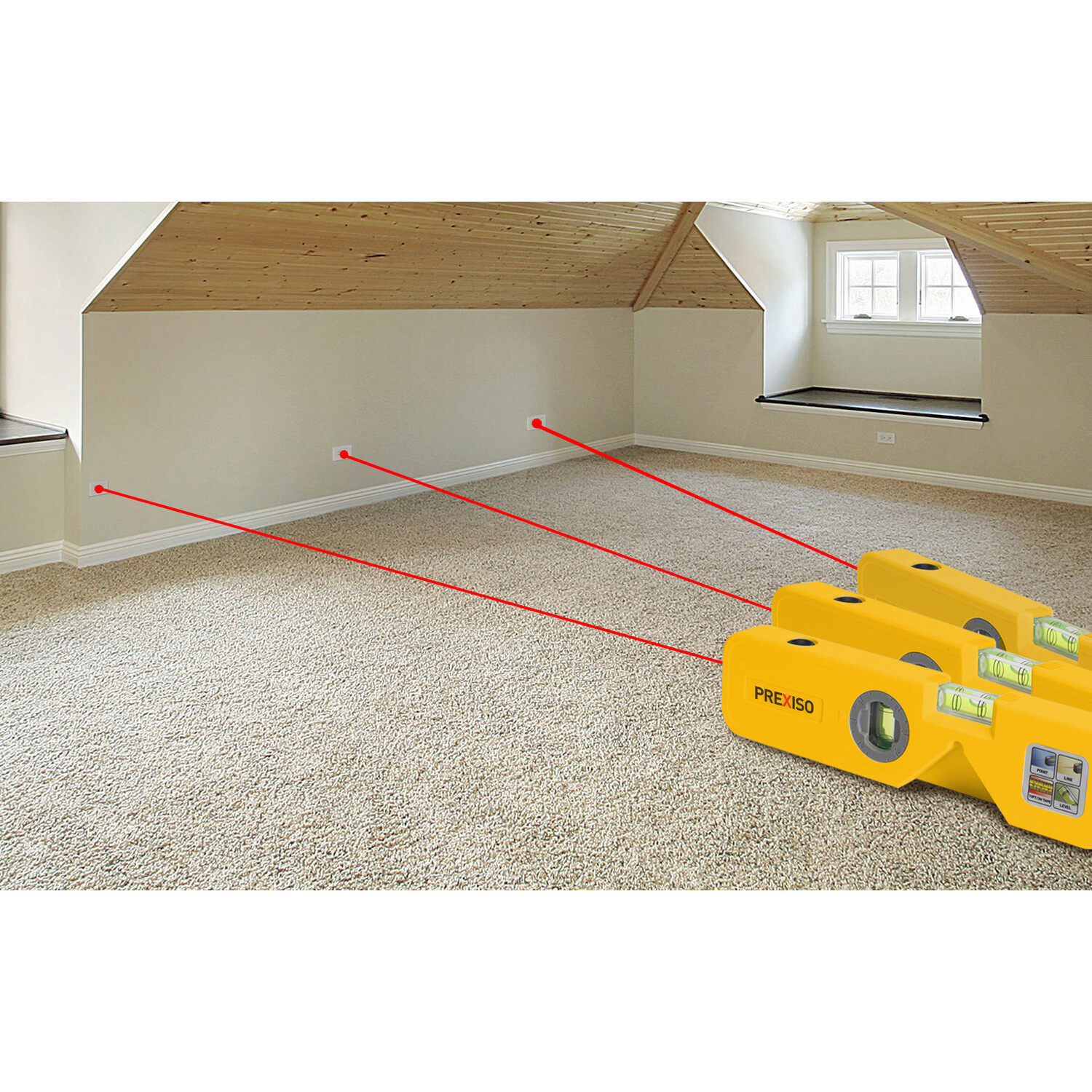 Make precise level markings with this Prexiso Multi Laser Alignment Tool. This smartly designed tool projects a laser line as well as a laser point and has a built-in bubble vial and rotating vial that come in handy for various applications with quick and accurate levelling. It has a 90-degree picture check slot which allows you to hang pictures perfectly. You can also get exact measurements using the built-in 3m tape measure with a durable nylon-coated blade. Standing on a sturdy, adjustable tripod, this user-friendly device is great for a variety of alignments and correction tasks.