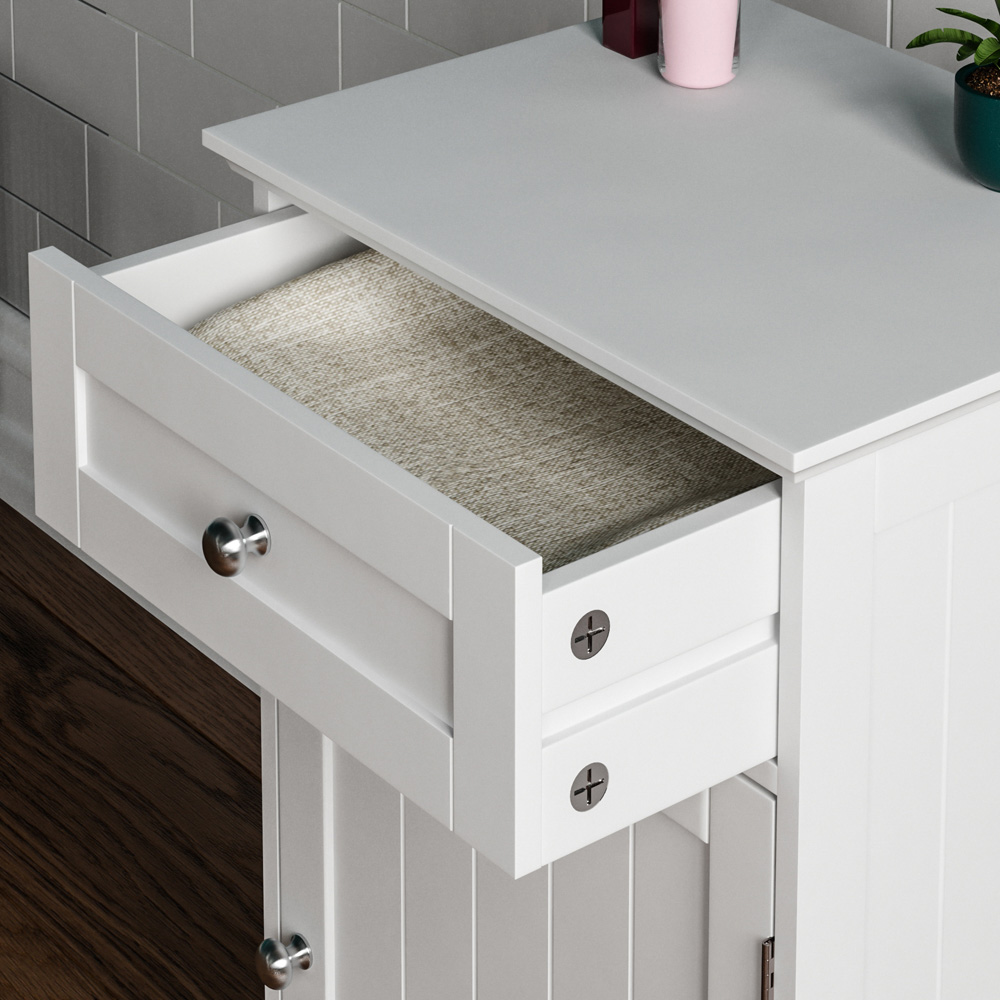 Adds a stylish and practical storage solution to your bathroom with Priano 1 Door 1 Drawer Freestanding Cabinet. Designed to fit seamlessly into any modern home - it features a classic white finish that will complement any decor style. Compact in size - it is ideal for small spaces. The cabinet is constructed from high-quality MDF materials that ensure its durability and long-lasting use. The drawer is fitted with smooth-gliding runners that ensure it opens and closes smoothly and quietly. Easy to assemble - it has all the necessary hardware and instructions that are included in the package.