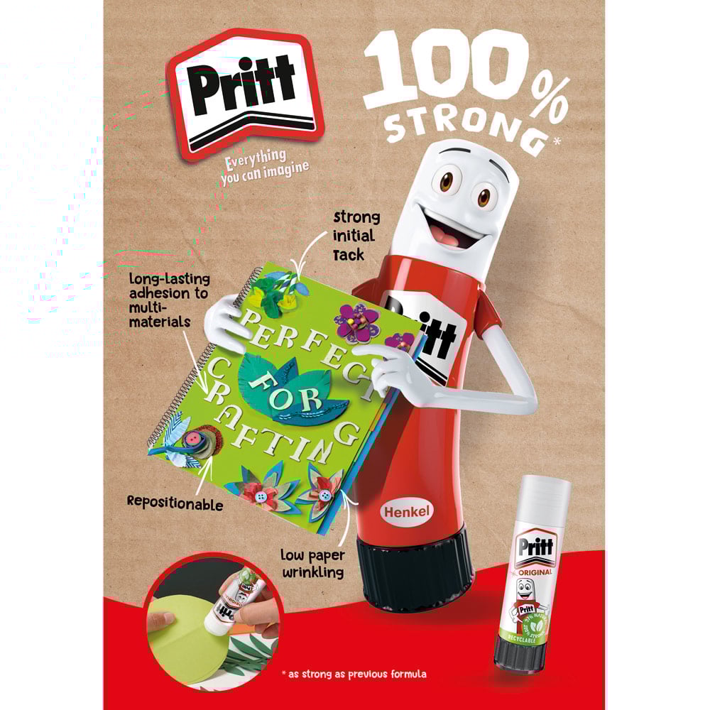 Get ready for unlimited creativity with the long-lasting and child-friendly Pritt Original Glue Stick! Let your children grow through creativity by getting hands-on with arts and crafts. Its formula is made of 97% natural ingredients, making it more environmentally friendly and sustainable than ever before! Whilst keeping previous claims, such as child-friendly, high efficiency and low paper wrinkling. Accidently rubbed it on clothing? Not to worry - it can be easily washed at 20°C! With a strong and long-lasting hold, the Pritt glue is easy to apply and results in fewer lumps and wrinkles on paper thanks to the low-water formulation. With a range of sizes, the glue stick is ideal for glueing either paper into notebooks or big and challenging craft projects. It will also make an ideal addition to your office supplies for use by those of any age! Size: 43g.