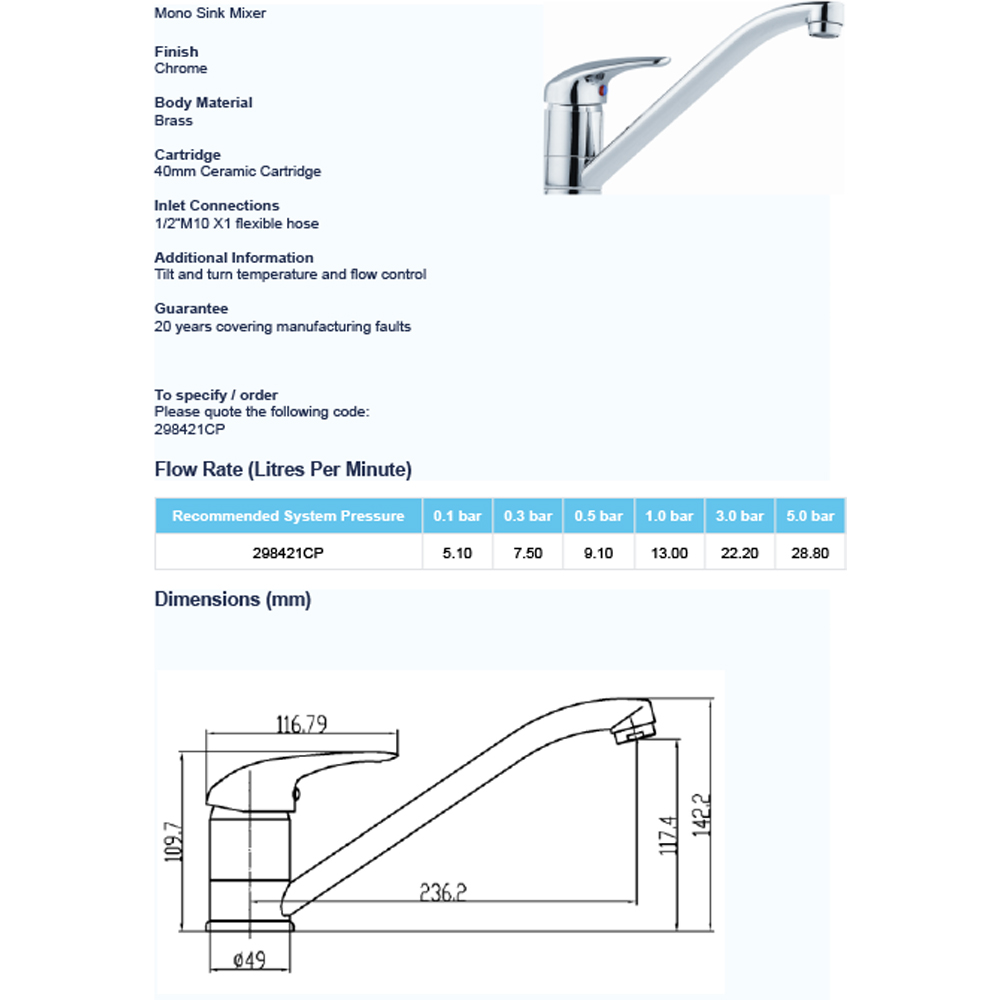 The Pro Ascot Mono Sink Mixer in chrome is a stylish and practical choice for any modern kitchen. This single-lever mixer tap offers effortless control of water flow and temperature, making it user-friendly for everyday tasks. Its durable brass construction and chrome finish ensure longevity and resistance to tarnish and corrosion. The 360-degree swivel spout provides greater reach and flexibility for washing dishes and filling pots, while the water-efficient design helps save on water bills. With its sleek and modern design, the Pro Ascot Mono Sink Mixer complements various kitchen styles, adding a touch of elegance. Easy to install, it's a convenient upgrade for any kitchen sink.
