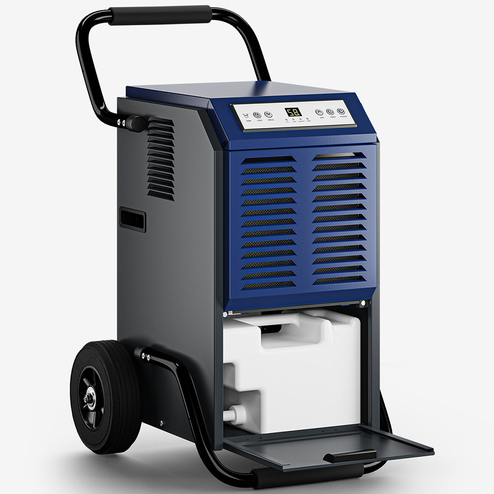 Our Industrial Dehumidifier is built for heavy-duty performance. Whether you're battling humidity in warehouses, workshops, basements, or construction sites, this powerhouse extracts up to 50 litres of moisture daily. The automatic humidity sensor measures the room’s humidity and adjusts its targets accordingly. Even in cold environments, its automatic defrost function keeps things running smoothly. Its practical features such as a foam handle, large buttons and sturdy wheels make this dehumidifier a dream to use and ensure long service life.