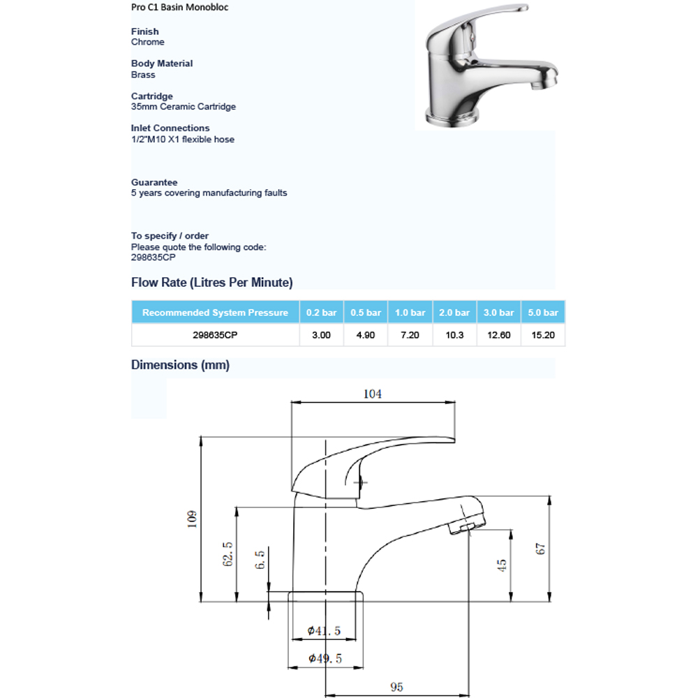 The Pro C1 Mono Basin Mixer in chrome is a stylish and practical basin tap designed for modern bathrooms. Complement various bathroom styles. This monobloc mixer features a single lever for effortless control of water flow and temperature. The sleek, minimalist design and chrome finish