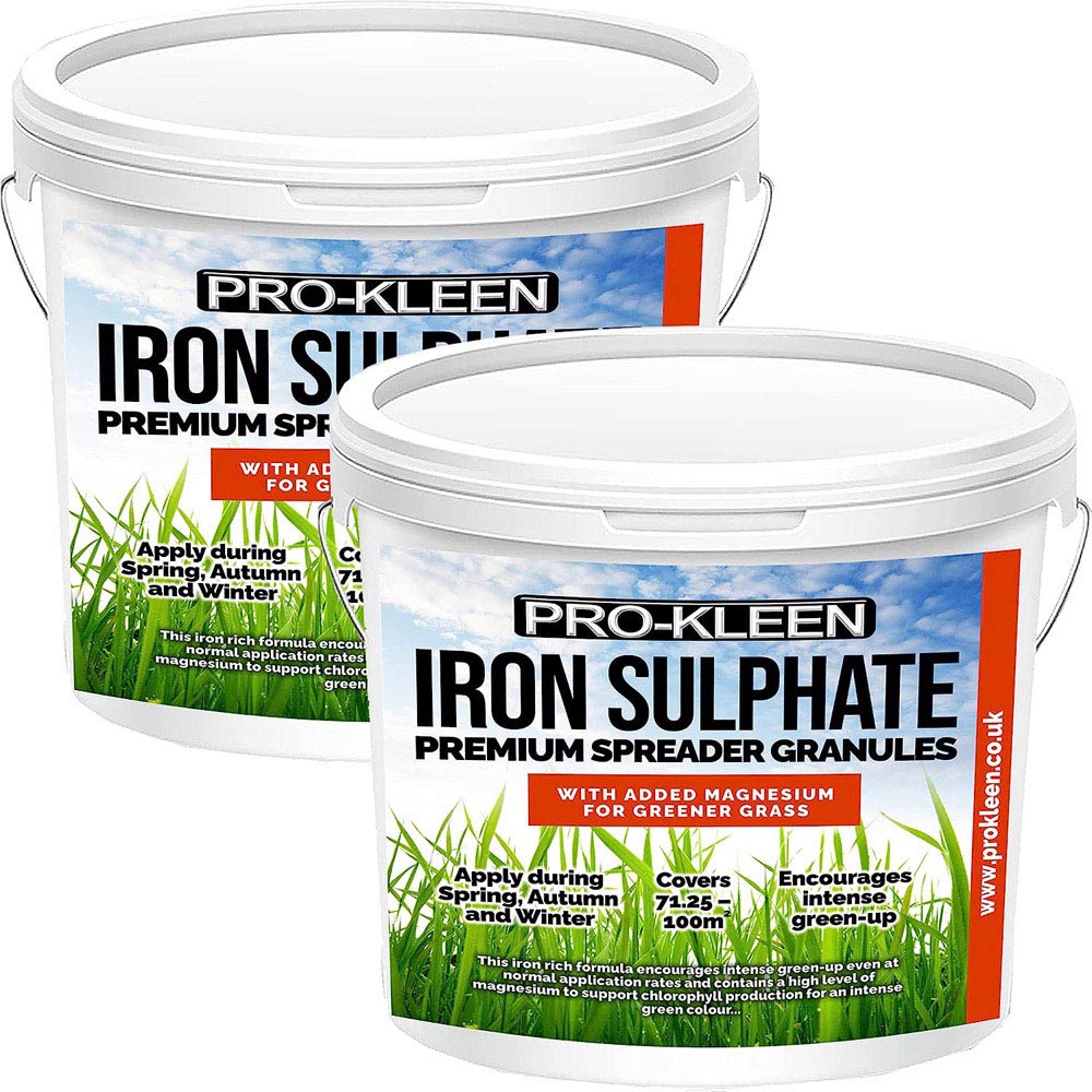 Ensure your lawn stays lush and vibrant year-round with the Pro-Kleen Iron Sulphate Premium Spreader Granules 5kg. Packed with high levels of magnesium to support chlorophyll production, these granules keep your grass healthy and green while minimizing the risk of staining. The magnesium promotes a green colour to give your grass some TLC to transform dull grass, and it’s ideal for applying after scarification. The high iron content promotes a vibrant green colour, transforming dull grass into a vibrant, lush carpet. With a particle size of 1-2mm, these granules provide thorough coverage per square metre, preventing speckling even at lower application rates. Their small size also allows them to blend seamlessly into the soil, keeping your lawn neat and well-maintained. These long-lasting granules require only one application every three months, making lawn care a breeze. Suitable for year-round use except during frosty conditions, it is best applied between January and December. Low-dust and easy to apply with a broadcast spreader, these granules contain magnesium and added seaweed for healthy and vibrant growth, ensuring your lawn looks its best. The application rate is 30g per square metre with a coverage of 83m2. Pack of two.