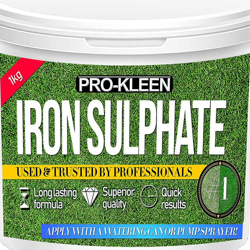Grow thick and healthy grass with Pro-Kleen Iron Sulphate 1kg. Iron sulphate is an iron-rich, long-lasting fertiliser that encourages your grass to grow a healthy dark green. It acts as a turf hardener to keep your grass luscious and strong all year round! The iron sulphate is used by professional greenkeepers, lawn keepers, park keepers, sports groundsmen (and more) for perfect pitches, green lawns, and superior golfing greens! It greens grass, hardens turf, and also leaves the soil slightly more acidic to improve the quality of your lawn. The 2.5kg tub of iron sulphate makes up to 2500L when diluted and covers up to 2500m2 grass greening and 1500 square metres for turf hardening! It can be applied wet or dry but for best results, we recommend using it dissolved in water for easy and even coverage.