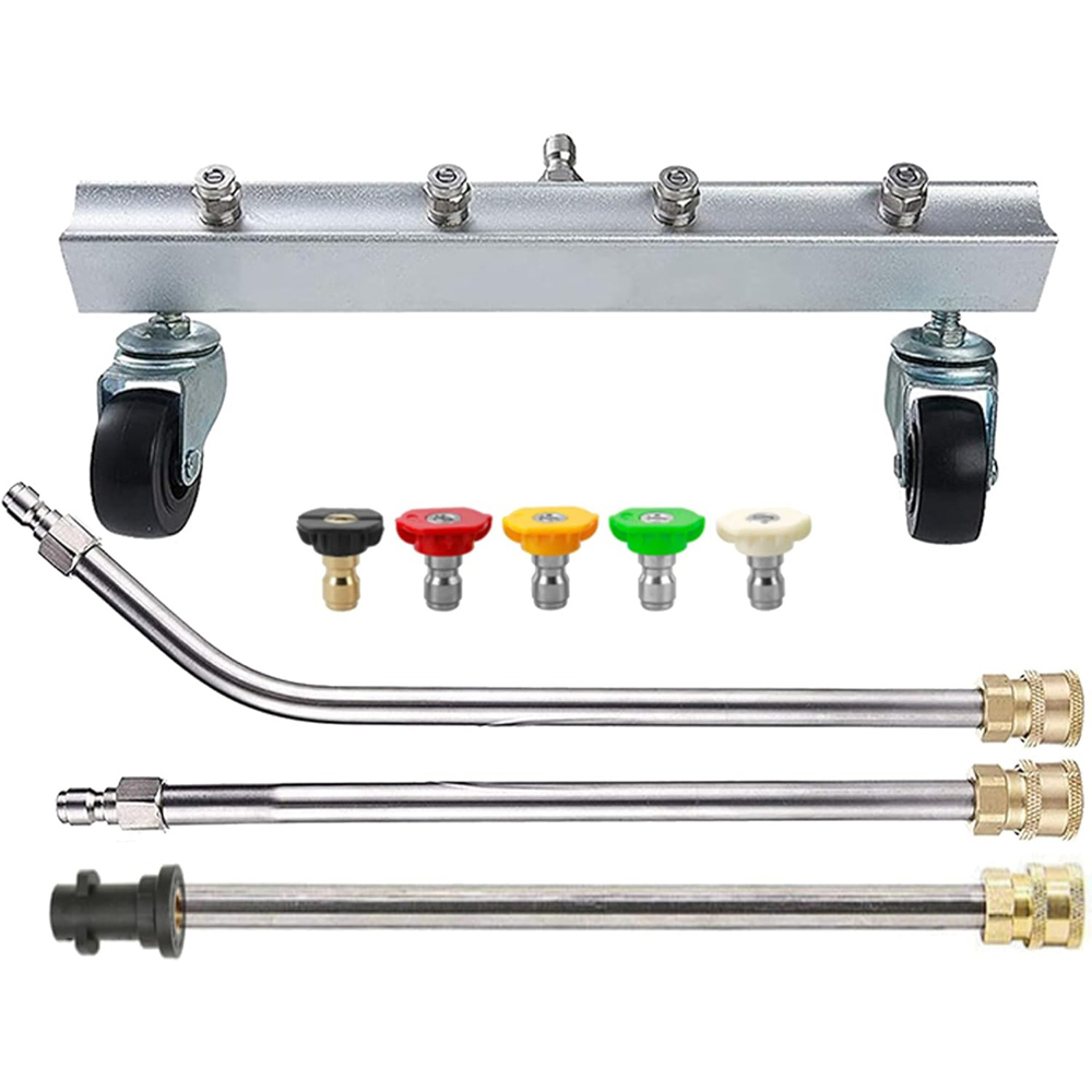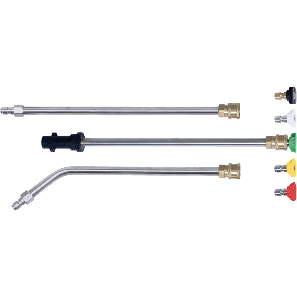 This Pro-Kleen Chassis cleaner is compatible with Karcher K Range pressure washers. It’s designed to go under your vehicle to deeply clean those hard-to-reach areas to leave your car, lorry, 4 x 4 and more super clean – perfect for vehicles with lots of dirt and grime underneath. The chassis cleaner is designed to fit under your vehicle to remove and loosen any dirt or grime. This will keep your car, lorry, 4 x 4 and more super clean and dirt-free. It’s ideal for cleaning hard to reach areas when you’re giving your vehicle a thorough and deep clean. Unlike many chassis cleaners, it is designed with three lances so that when they are all attached it can easily reach under your vehicle. This makes the job of cleaning under your vehicle super easy, without having to worry about it not cleaning hard to reach areas. Not only is this Pro-Kleen Chassis cleaner designed to clean under vehicles, but it can also be converted to a short or long reach lance that lets you reach high places such as the top of vans, tractors, guttering, and cleaning facias etc. It also comes with 5 interchangeable spray adaptors to give you multiple spray and power options to cater to the job in hand. What’s Included? 1 x 4 jet chassis cleaner with 1/4 inch quick connect/release fitted male adaptor, 3 quick fitting lance section which is Karcher compatible for either fitting to the chassis cleaner or using as a jet wash lance & 5 interchangeable 1/4 inch quick connect/release lance jet and spray adaptors ranging from 0° - 65° spray patterns (please see listing images).