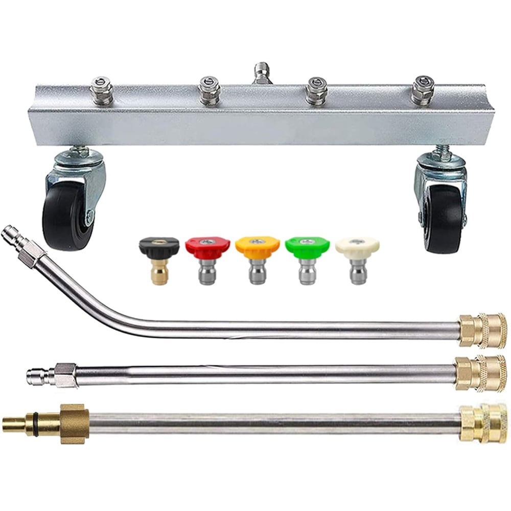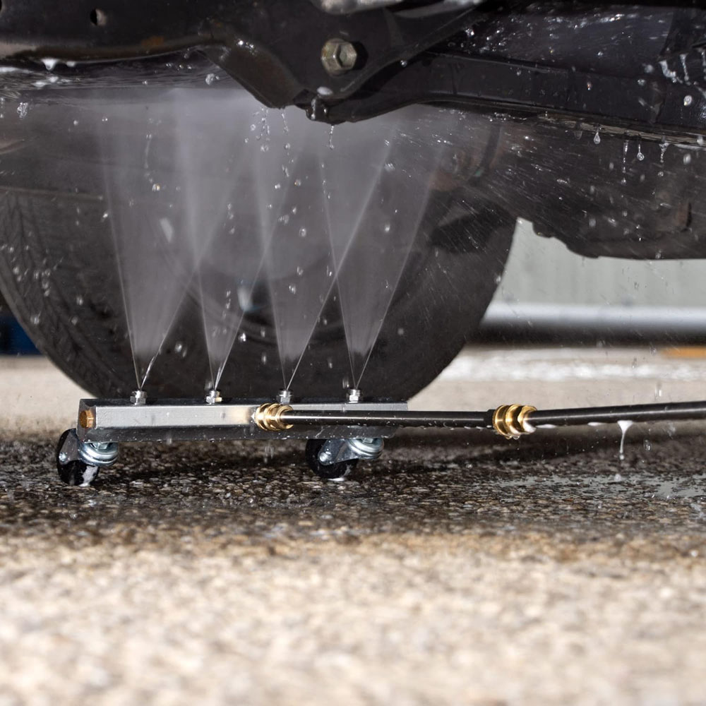 This Pro-Kleen Chassis cleaner is compatible with Lavor pressure washers. It’s designed to go under your vehicle to deeply clean those hard-to-reach areas to leave your car, lorry, 4x4 and more super clean – perfect for vehicles with lots of dirt and grime underneath. This Chassis cleaner is designed to fit under your vehicle to remove and loosen any dirt or grime. This will keep your car, lorry, 4x4 and more super clean and dirt-free. It’s ideal for cleaning hard to reach areas for when you’re giving your vehicle a thorough and deep clean. Unlike many chassis cleaners, it is designed with three lances so that when they are all attached it can easily reach under your vehicle. This makes the job of cleaning under your vehicle super easy, without having to worry about it not cleaning hard to reach areas. Not only is this Pro-Kleen Chassis cleaner designed to clean under vehicles, but it can also be converted to a short or long reach lance that lets you reach high places such as the top of vans, tractors, guttering, and cleaning facias etc. It also comes with 5 interchangeable spray adaptors to give you multiple spray and power options to cater to the job in hand. What’s Included? 1 x 4 jet chassis cleaner with 1/4 inch quick connect/release fitted male adaptor, 3 quick fitting lance section which is Lavor compatible for either fitting to the chassis cleaner or using as a jet wash lance & 5 interchangeable 1/4 inch quick connect/release lance jet and spray adaptors ranging from 0° - 65° spray patterns (please see listing images).