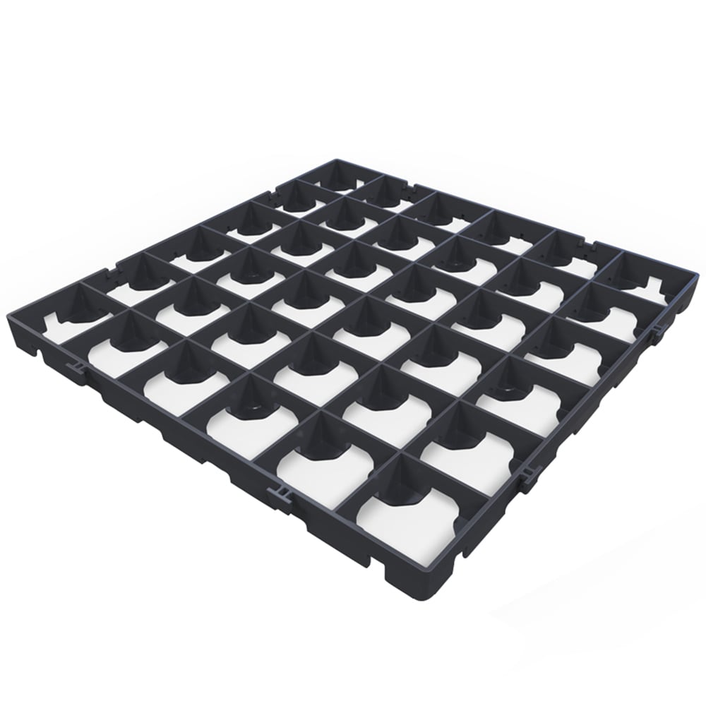 ProBase Quickfit Shed Bases are designed to provide a firm long lasting base for garden buildings. Each kit comprises a number of super strong, heavy-duty grids made from 100% recycled plastic. Each kit comes with a heavy duty weed resistant membrane cut to size. ProBase are lightweight and simple to install, simply interlock the grids. ProBase is suitable for all garden buildings including timber sheds, plastic sheds, workshops, summerhouses and log cabins. Independently tested to support over 50 tonnes per grid of vertical load empty of gravel. The system has been tested with infill of gravel to over 175 tonnes per grid, we also offer a fully trackable delivery service so customers can manage their delivery time and date. This is the only grid on the market designed specifically to carry timbers buildings and actually measures 500mm x 500mm in size wall to wall and comfortably fits 5ft, 7ft, 10ft sheds. The ProBase is also the only grid on the market with load spreading feet on the underside so no gravel required, also coming with a sheet of commercial grade weed-resistant membrane, cut to size.